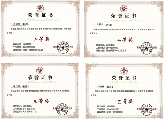 11月21日—24日,全國民辦高校體育聯盟體育部主任/院長培訓暨首屆體育教師教學設計創新大賽于鄭州升達經貿管理學院圓滿收官。這場賽事聚焦體育教學創新,匯聚了全國民辦高校的體育教學骨干力量。晉中信息學院競技體育中心梁國軍副主任帶隊,肖麗娟、武君戈、吳丹丹、劉建偉四位教師組成參賽團隊,他們憑借過硬的專業能力和創新的教學設計脫穎而出,分別斬獲特色項目術科組二等獎、體育專業理論組二等獎、體育專業術科組三等獎及公共體育術科組三等獎,團隊更憑借默契作榮獲優秀組織獎,為學校贏得多項榮譽。