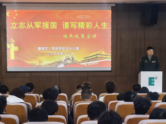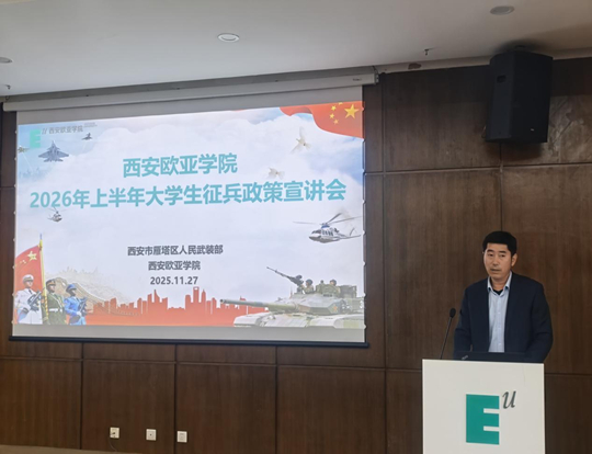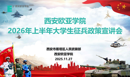國無防不立,民無兵不安。為深入貫徹落實習近平總書記強軍思想,積極響應黨中央、中央軍委關于征集高素質青年入伍的戰略部署,引導廣大青年學子將愛國之心化為報國之行,11月27日,以“志存高遠礪青春,建功立業赴軍營”為主題的西安歐亞學院2026年上半年大學生征兵政策宣講會在學校圖書館學術報告廳隆重舉行。此次活動不僅是一場精準的政策解讀會,更是一堂深刻的思想動員課和國防教育課,正式掀開了西安歐亞學院新一年度征兵工作的序幕。