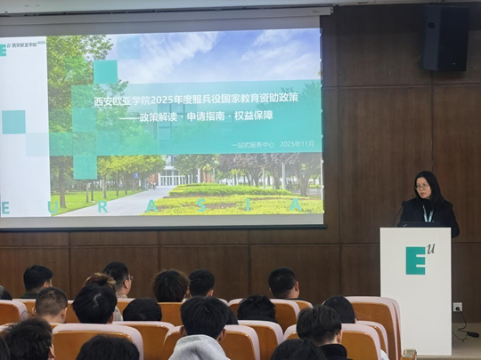 精準的保障是消除后顧之憂的關鍵。西安歐亞學院學生資助管理中心專員郭曉慧老師隨后登臺,聚焦同學們最為關切的學業與經濟支持問題,對“服兵役國家教育資助政策”進行了專業細致的解讀。她從資助政策的具體內容、申請流程指南到學校的對接部門與資源平臺,都做了清晰的說明,學校也將為入伍學生提供“一站式”全流程服務,確保每位有志學子都能“輕裝上陣”,安心報國。