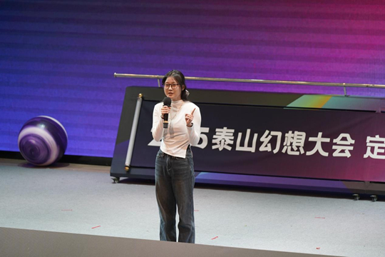 學生科幻聯合會代表劉夏冰同學(五汶書院/藝術傳媒學院)以“泰山腳下,星空之上”為題登上講臺,分享了自己的成長感悟。她表示,科幻是認知世界的獨特透鏡。蓬萊科幻學院(云端劇本殺學院)以“東方幻想王國”為定位,搭建跨界實踐平臺,使她收獲了想象力與勇氣、跨界智慧與文化自信,還深刻體會到科幻創作需兼具科技硬核與人文溫度,更加堅定了以東方智慧講述未來中國故事的信念。