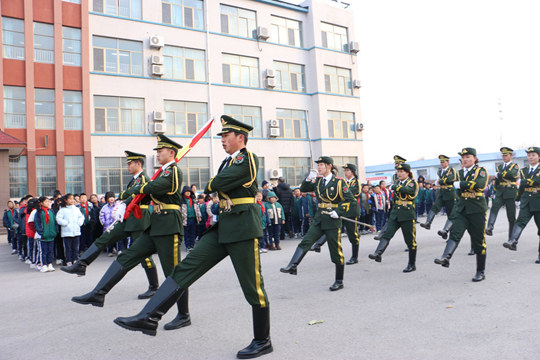 在每周的例行升旗儀式中,同學(xué)們注視國(guó)旗緩緩升起,濃濃的民族自豪感油然而生;在大型完滿(mǎn)活動(dòng)中,國(guó)旗護(hù)衛(wèi)隊(duì)身姿挺拔,為活動(dòng)注入一抹莊重的色彩;在“追逐朝陽(yáng)”晨練活動(dòng)中,他們先后進(jìn)入山口東村小學(xué)、祝陽(yáng)鎮(zhèn)小學(xué)、山口中心小學(xué)、泰安市第十五中學(xué)等學(xué)校,實(shí)現(xiàn)義務(wù)教育階段全覆蓋,讓愛(ài)國(guó)思想在中小學(xué)生們的心里漸漸成長(zhǎng)……