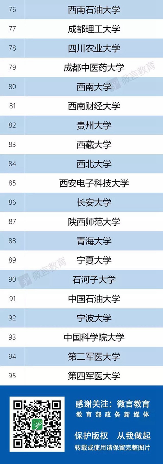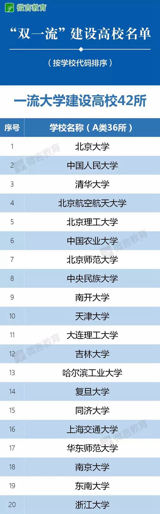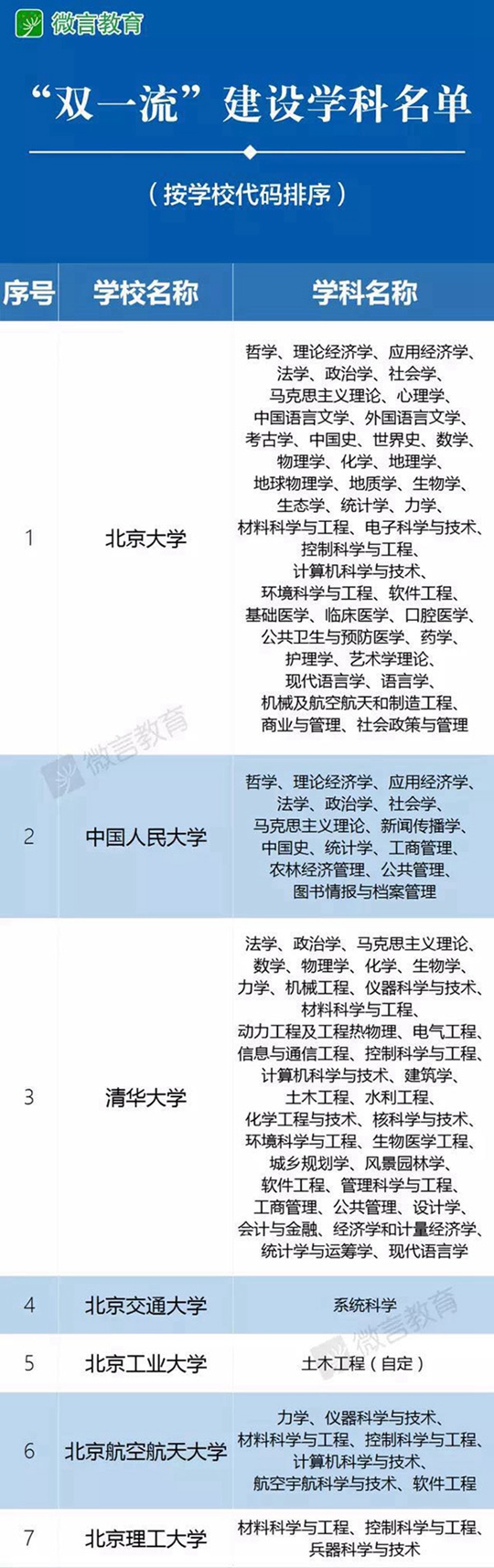 日前,教育部、財(cái)政部、國家發(fā)展改革委印發(fā)《關(guān)于公布世界一流大學(xué)和一流學(xué)科建設(shè)高校及建設(shè)學(xué)科名單的通知》,公布世界一流大學(xué)和一流學(xué)科(簡稱“雙一流”)建設(shè)高校及建設(shè)學(xué)科名單。