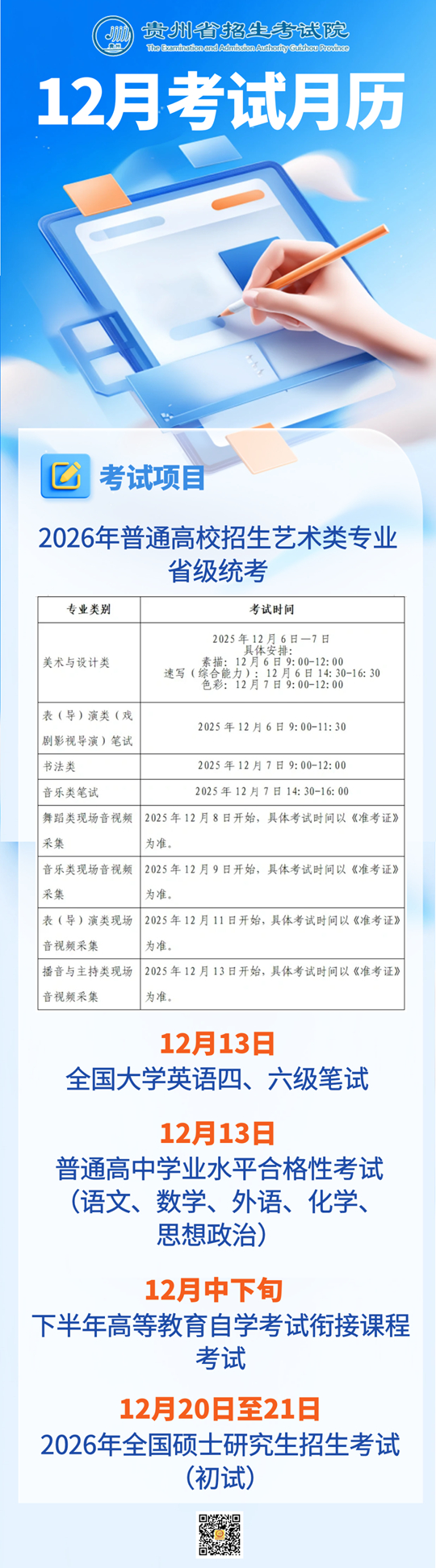 2025年12月貴州教育考試月歷