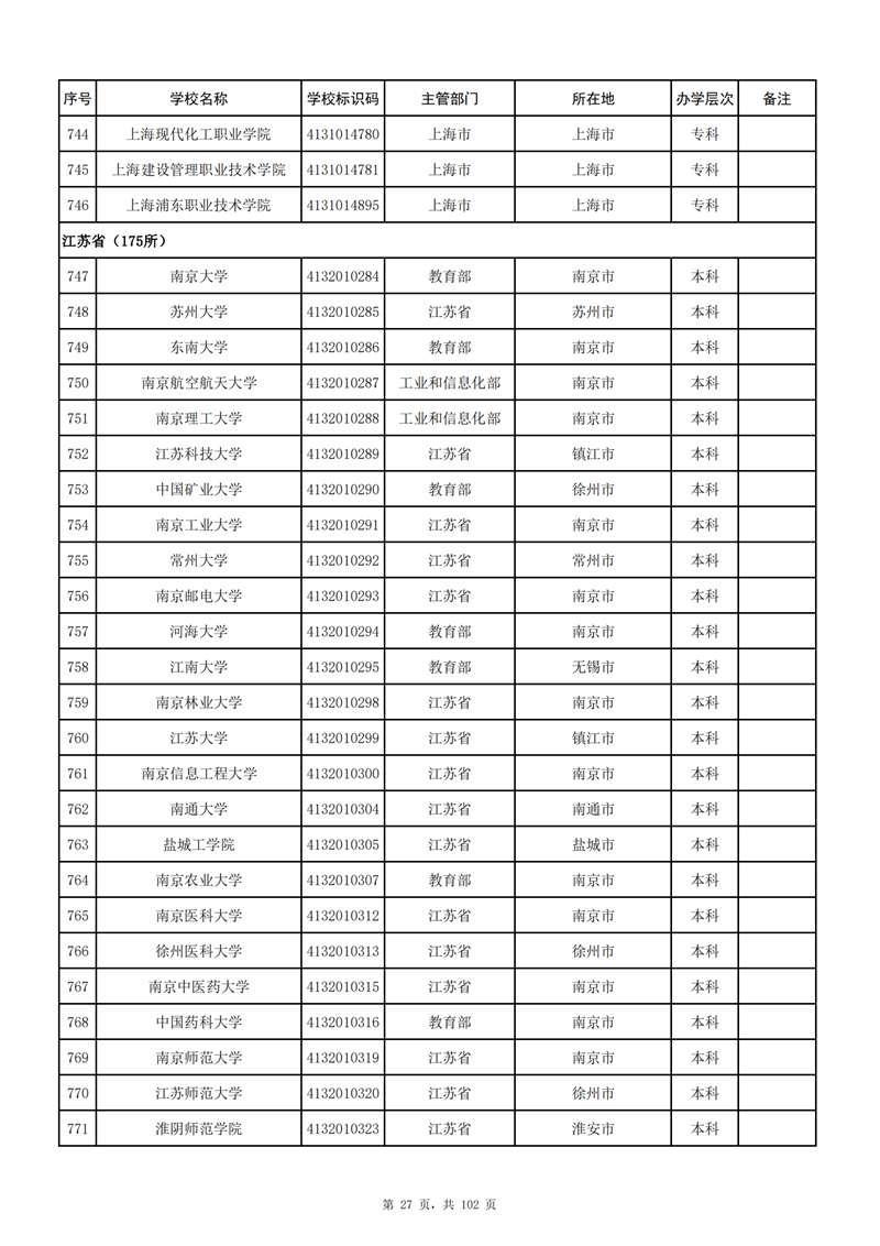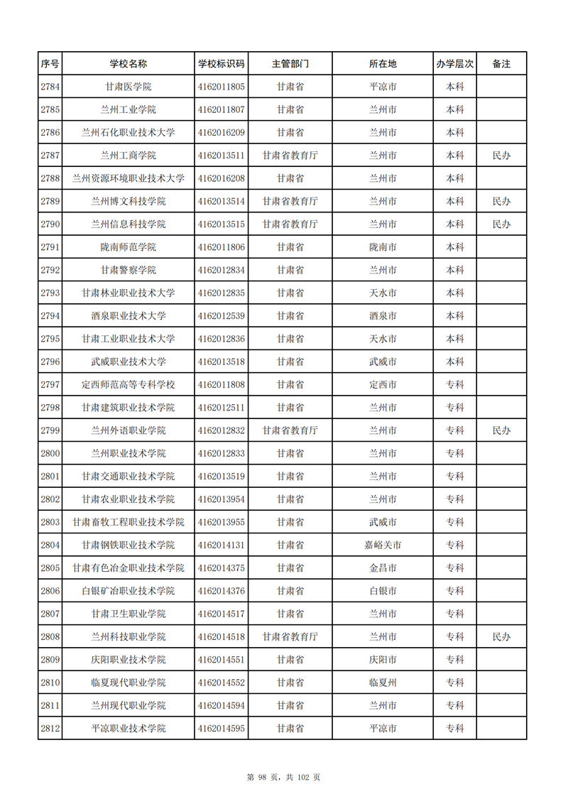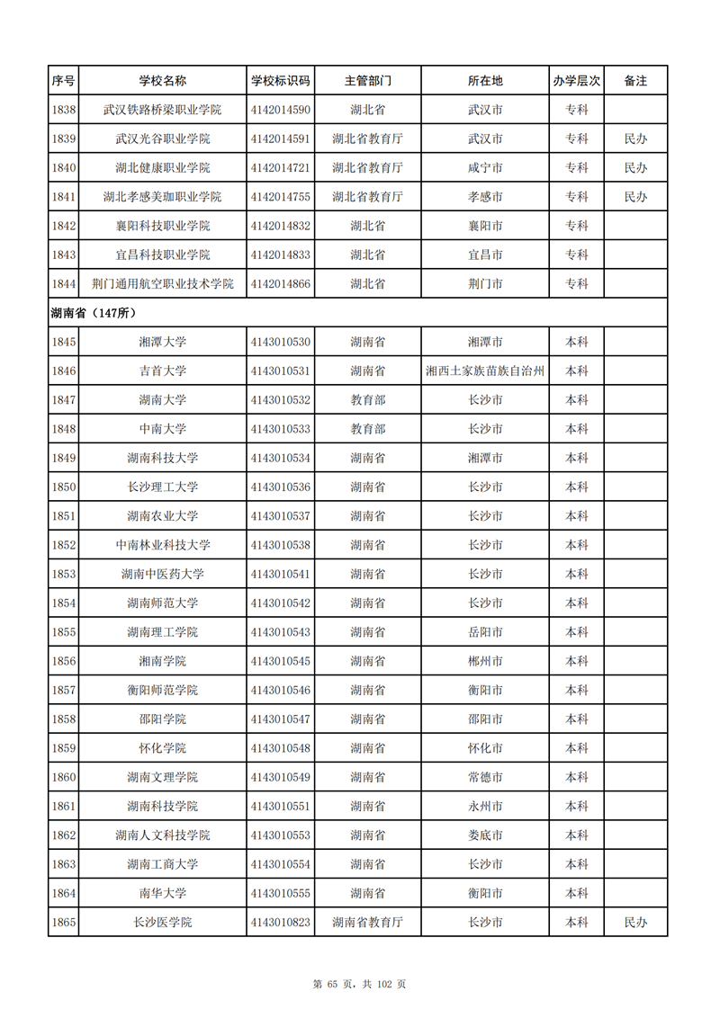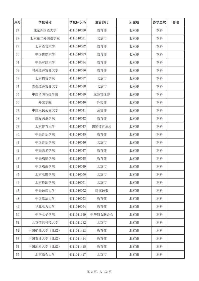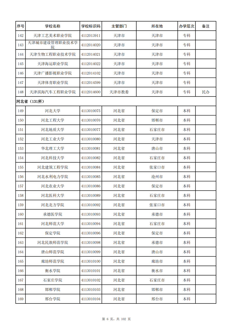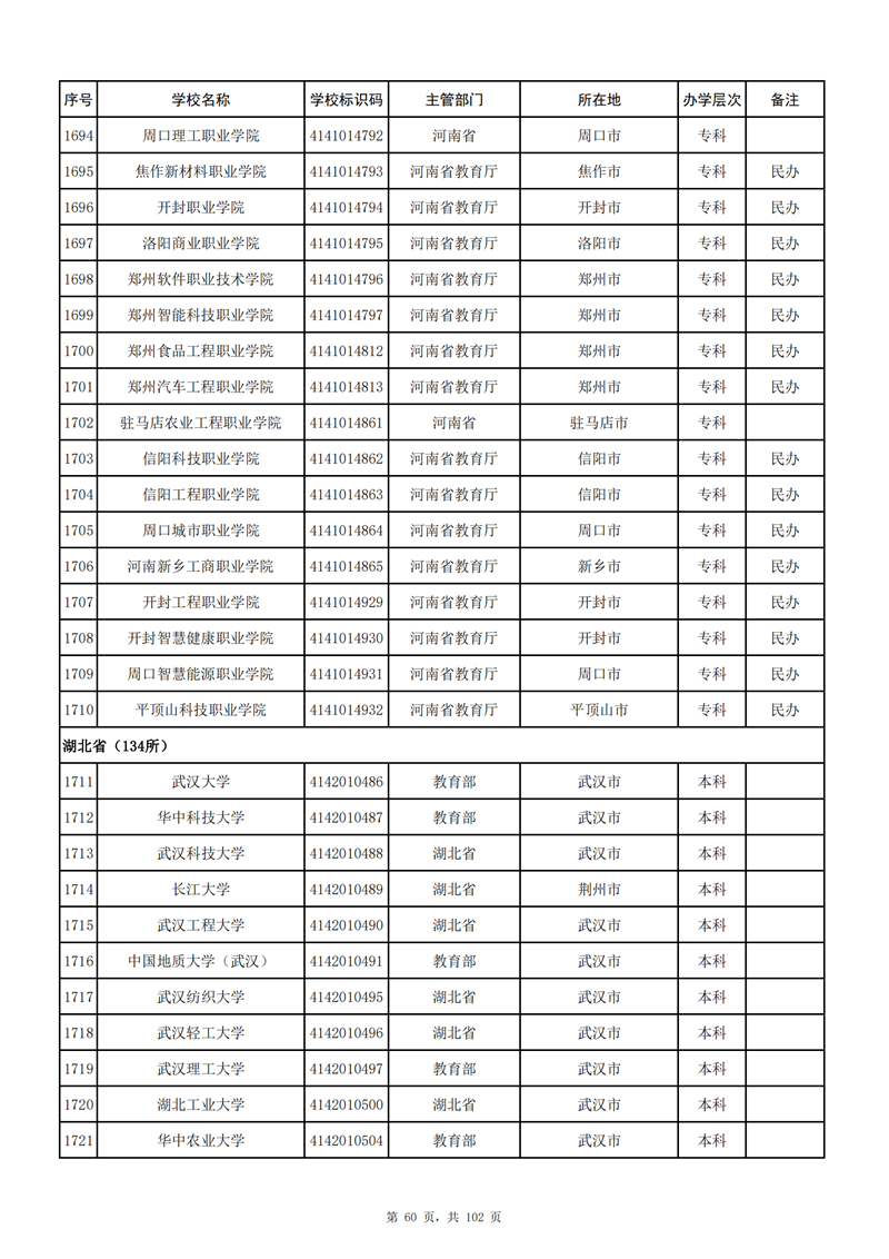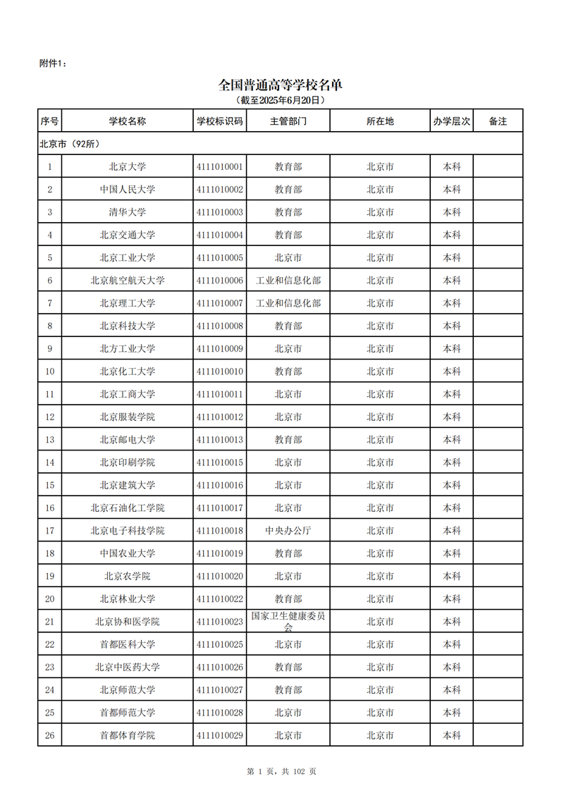 截至2025年6月20日,全國高等學校共計3167所,其中:普通高等學校2919所,含本科學校1365所、高職(專科)學校1554所;成人高等學校248所。本名單未包含港澳臺地區(qū)高等學校。