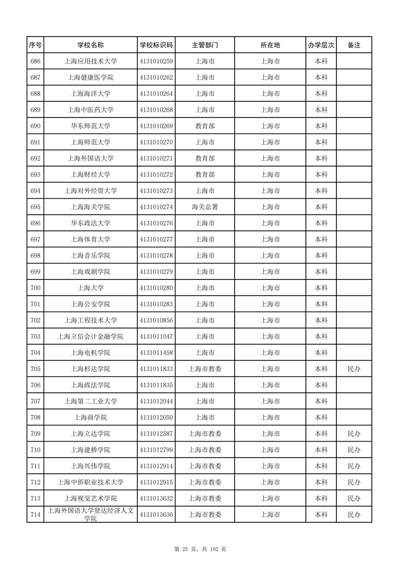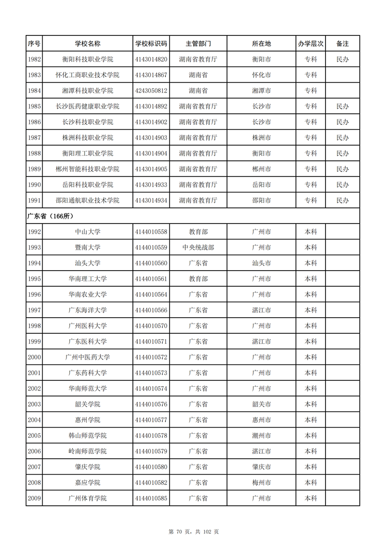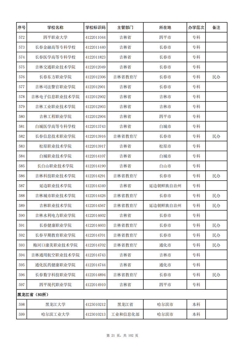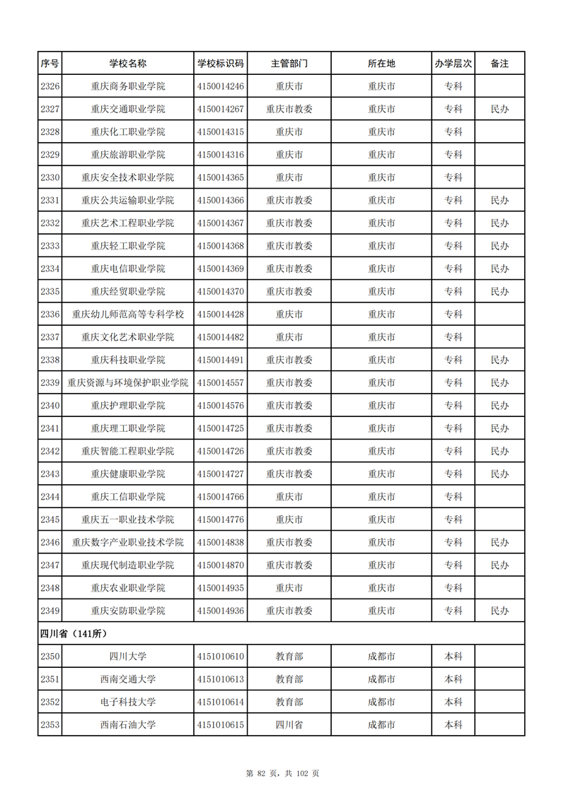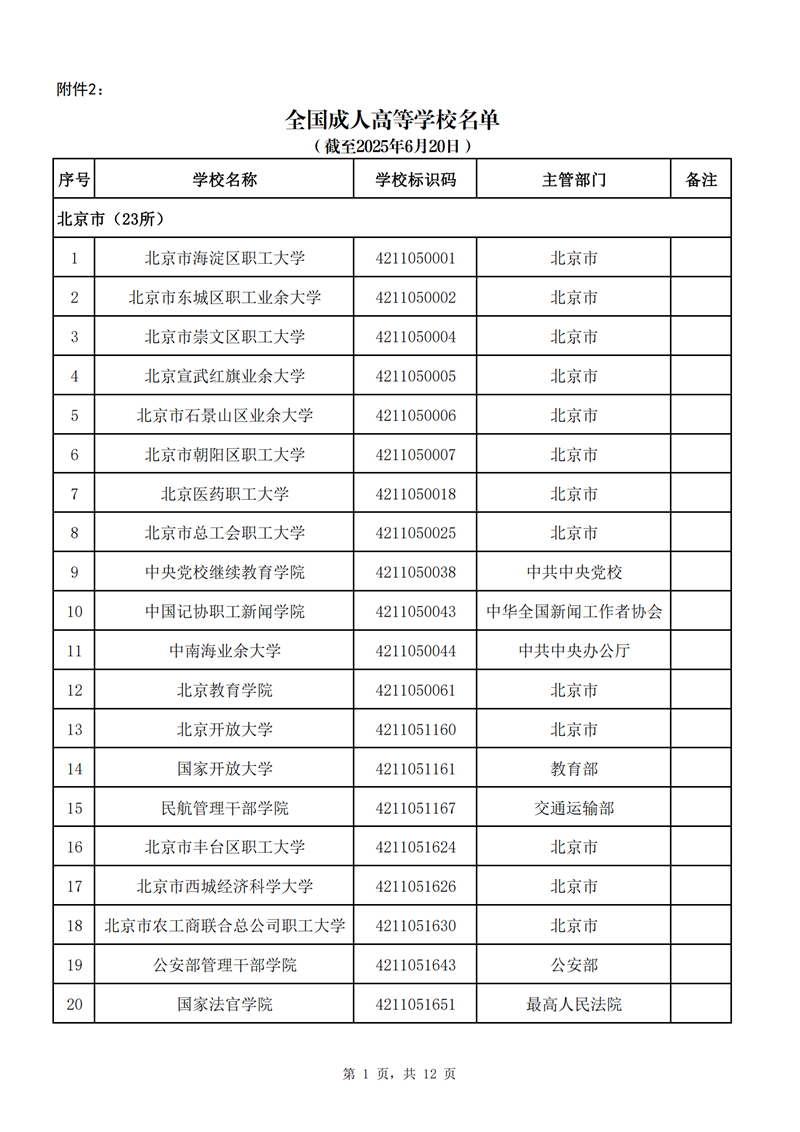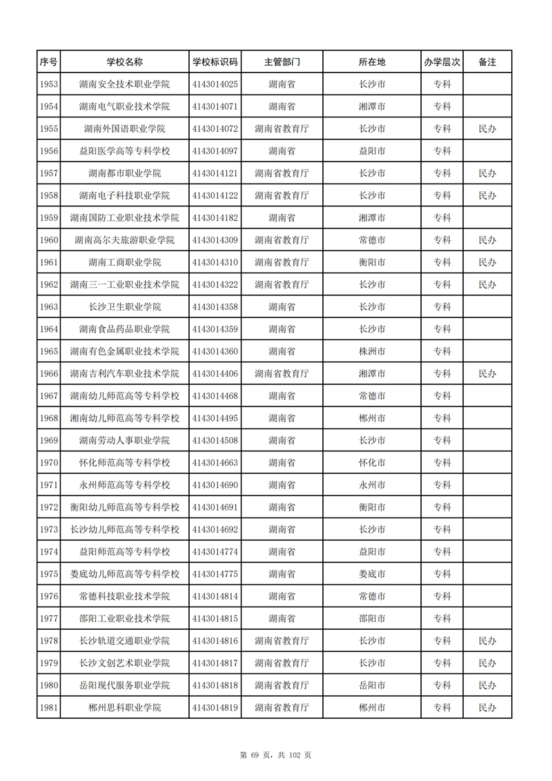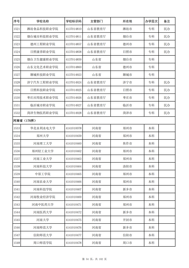 截至2025年6月20日,全國高等學校共計3167所,其中:普通高等學校2919所,含本科學校1365所、高職(專科)學校1554所;成人高等學校248所。本名單未包含港澳臺地區(qū)高等學校。