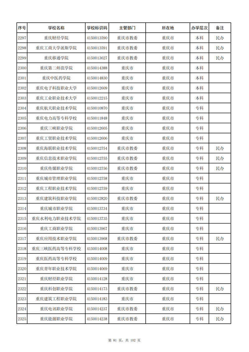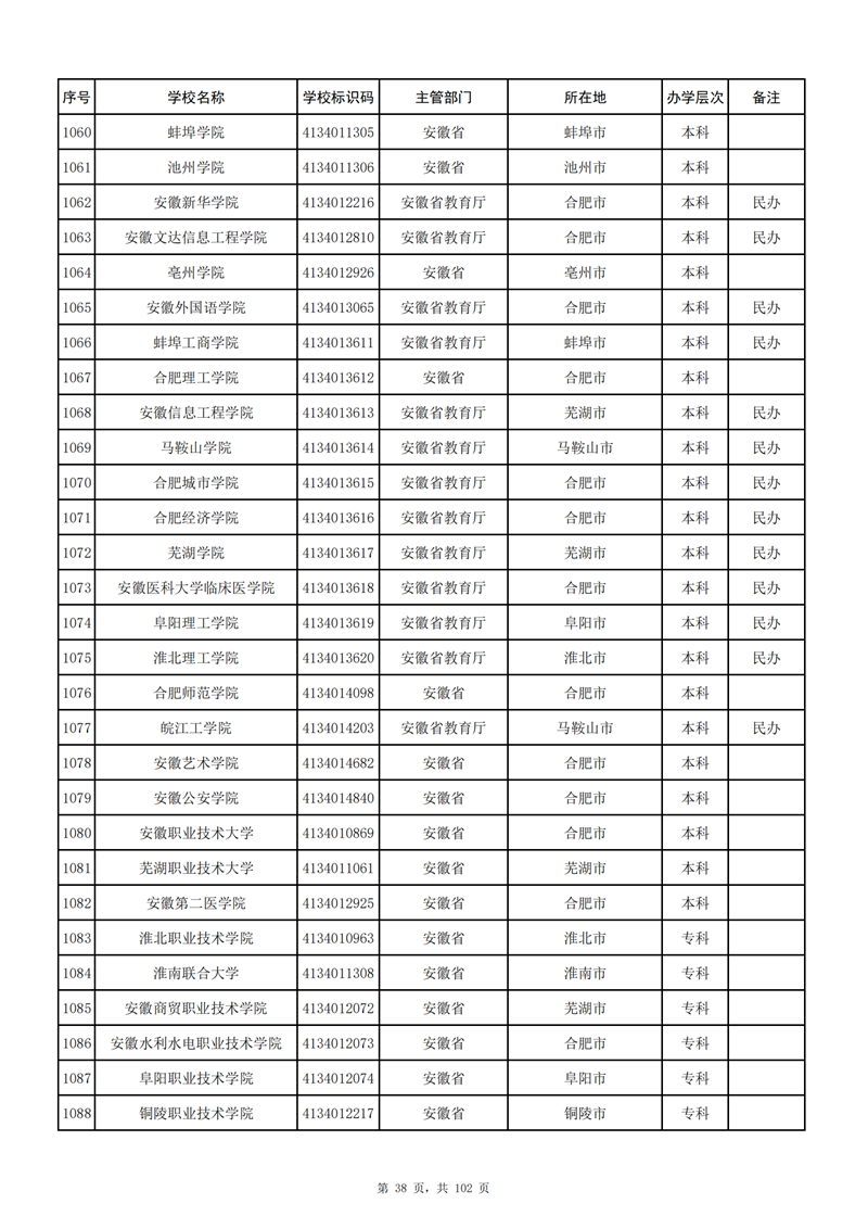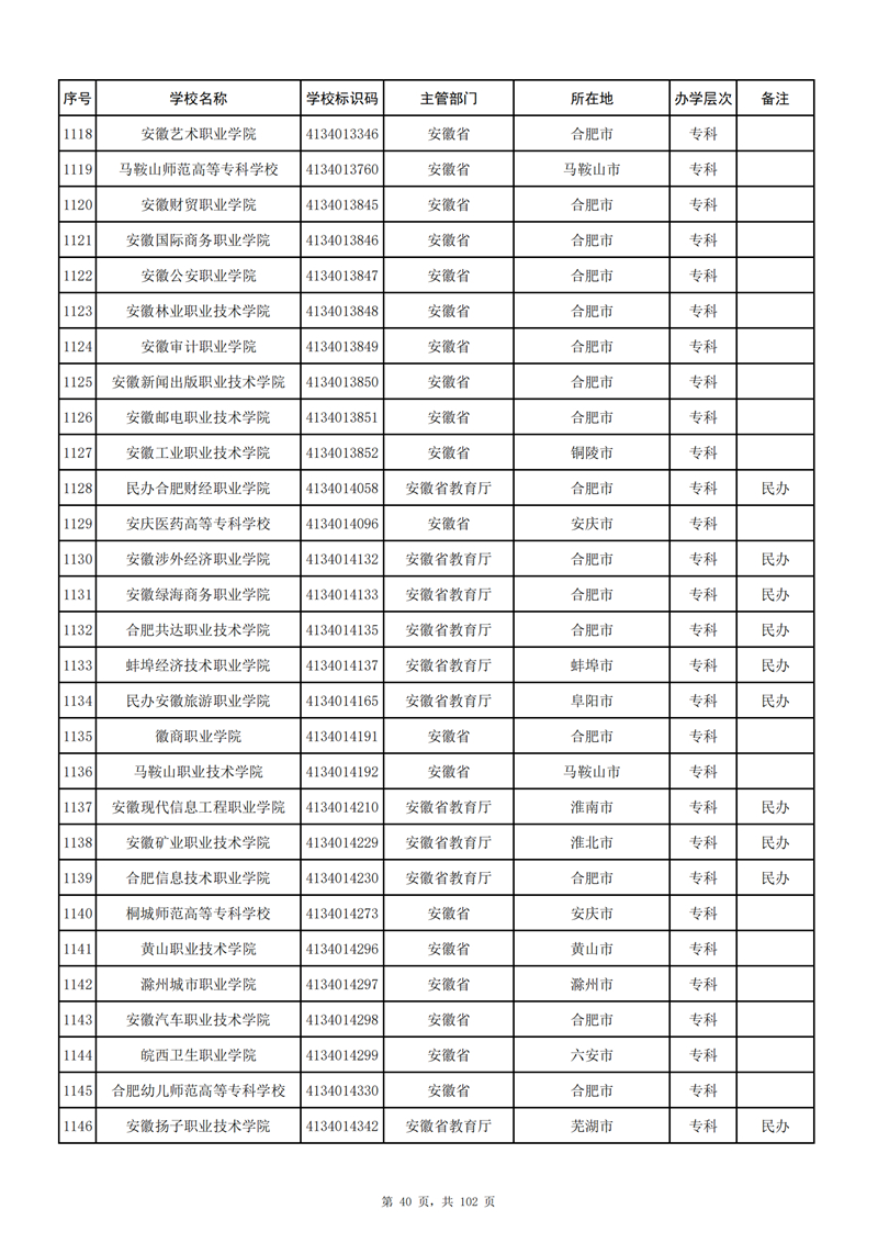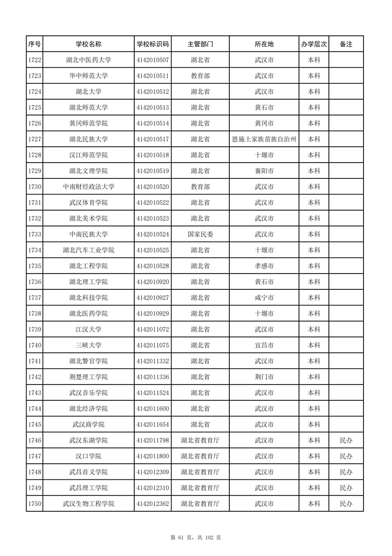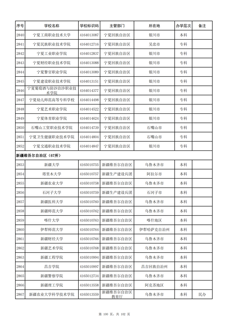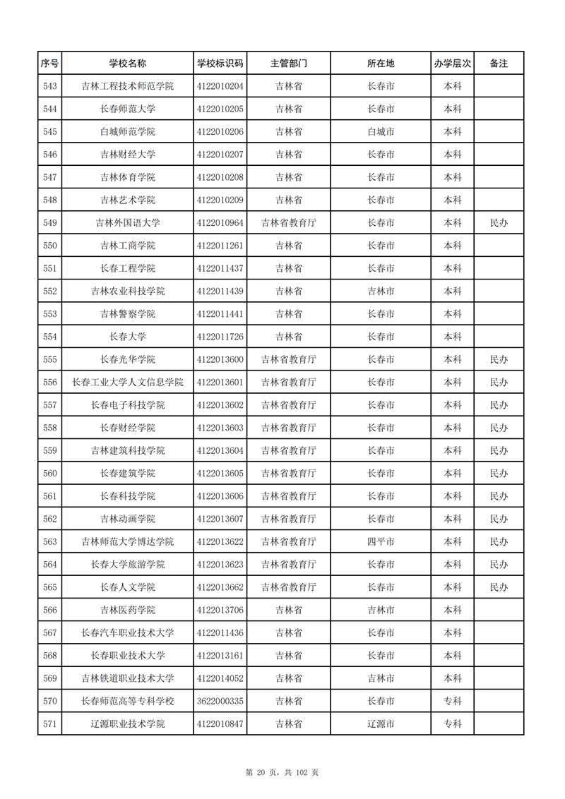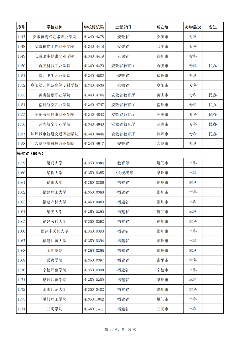 截至2025年6月20日,全國高等學校共計3167所,其中:普通高等學校2919所,含本科學校1365所、高職(專科)學校1554所;成人高等學校248所。本名單未包含港澳臺地區(qū)高等學校。