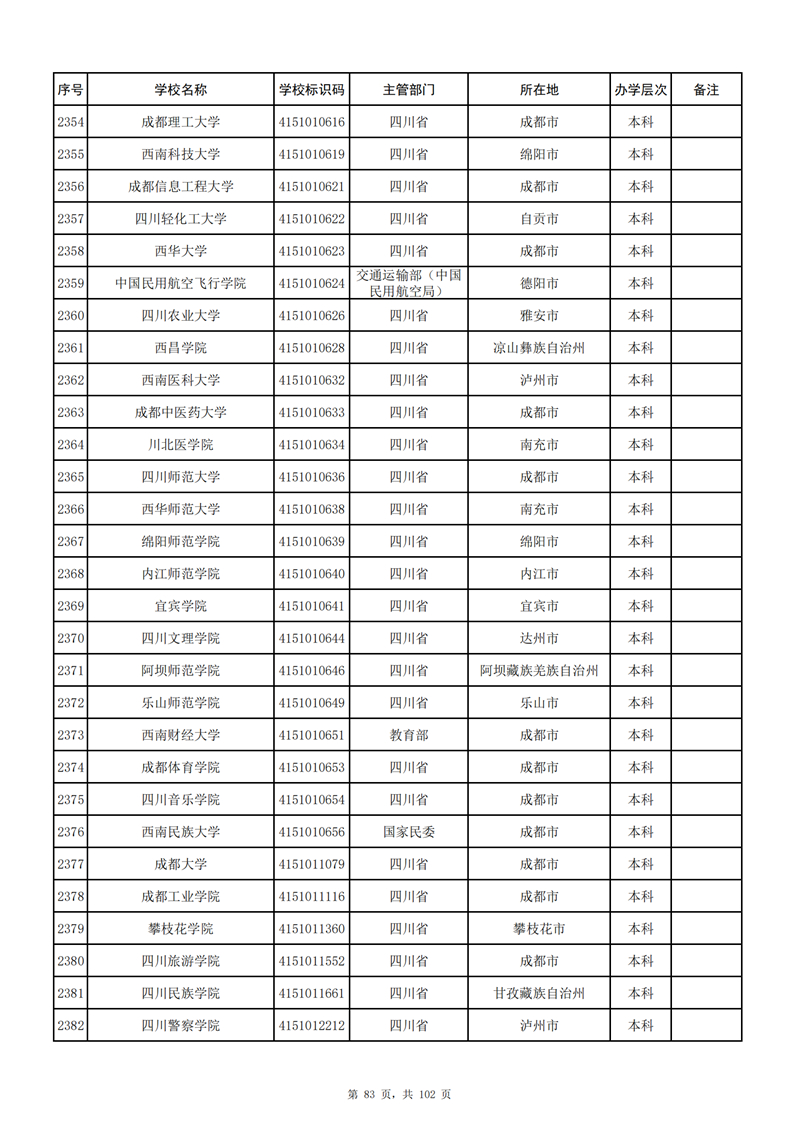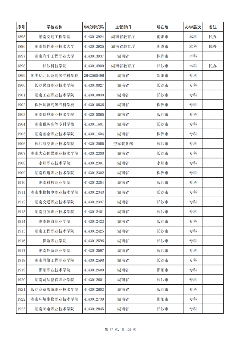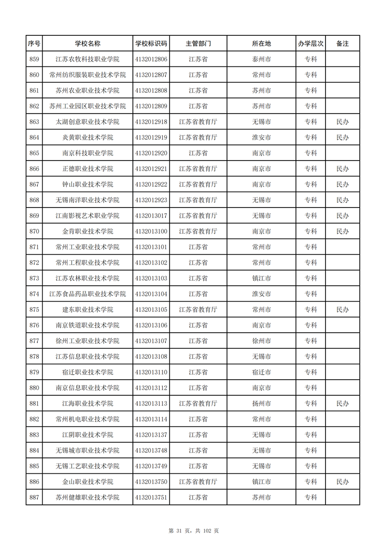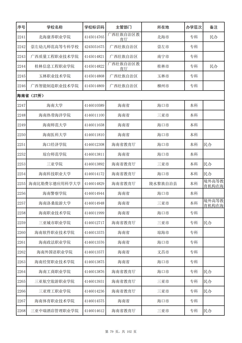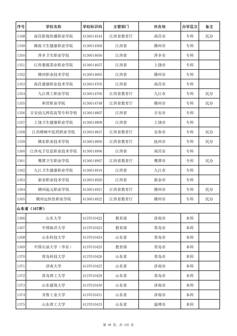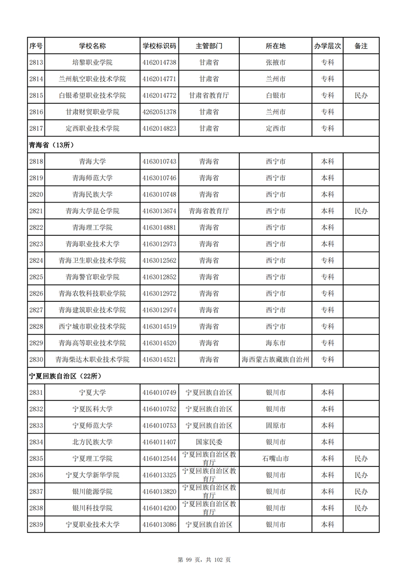 截至2025年6月20日,全國高等學校共計3167所,其中:普通高等學校2919所,含本科學校1365所、高職(專科)學校1554所;成人高等學校248所。本名單未包含港澳臺地區(qū)高等學校。