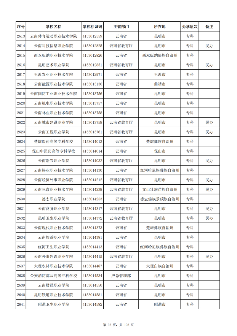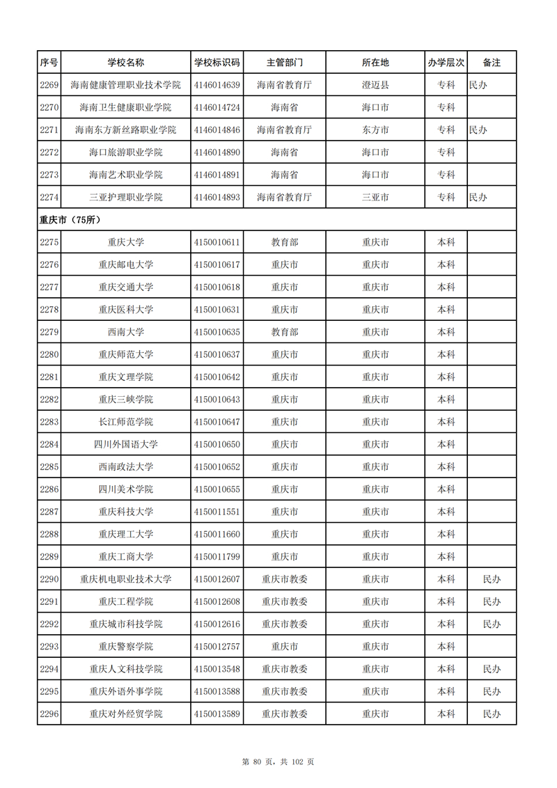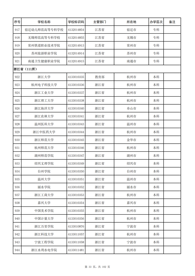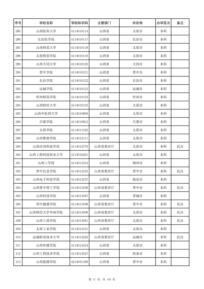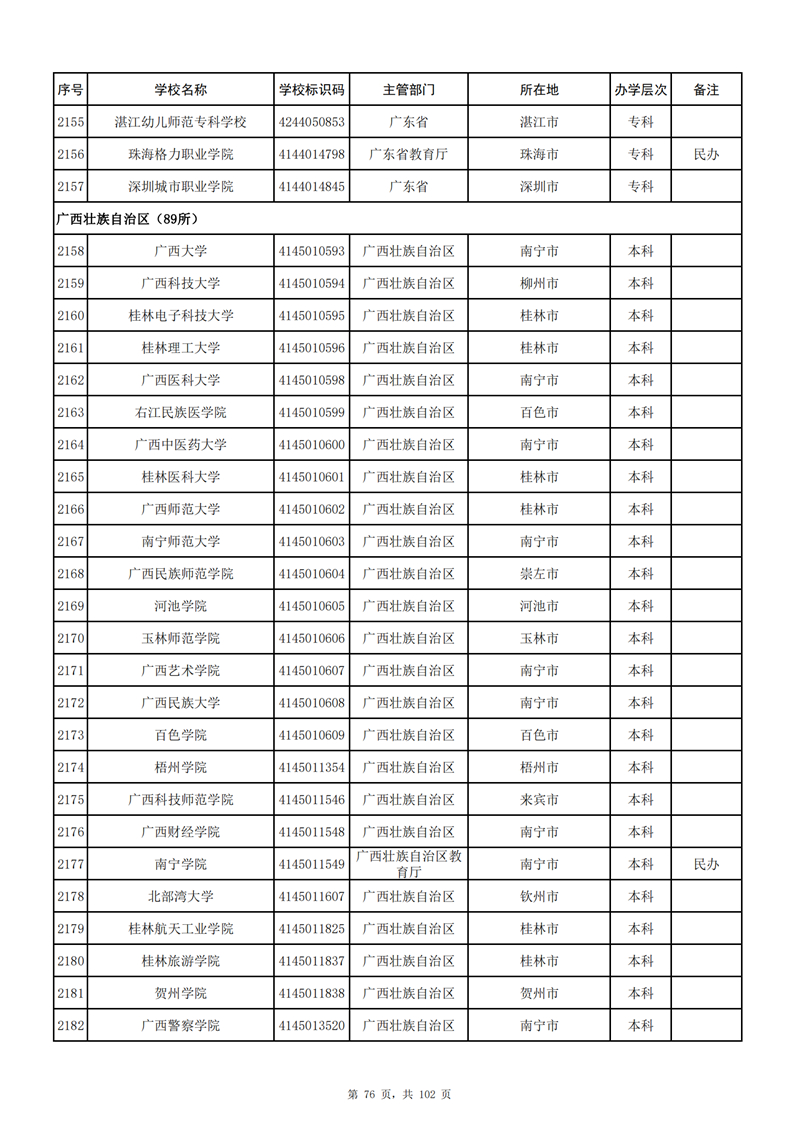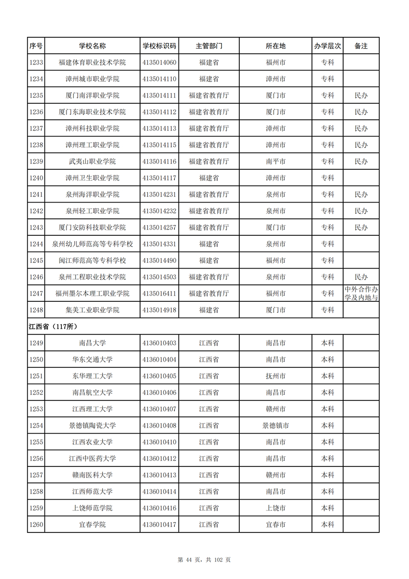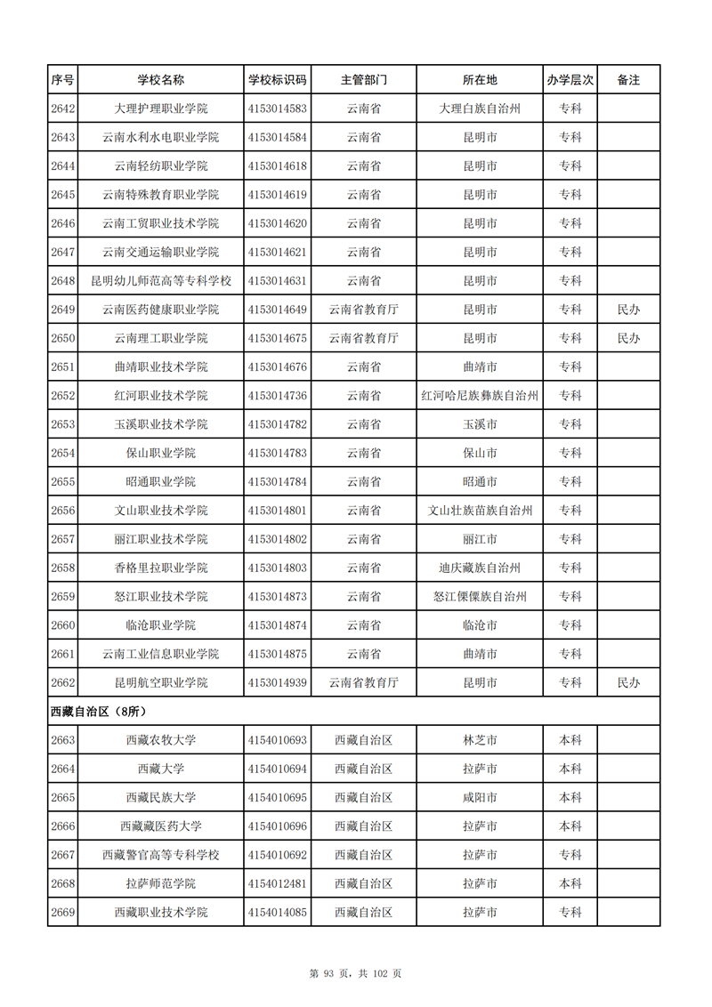 截至2025年6月20日,全國高等學校共計3167所,其中:普通高等學校2919所,含本科學校1365所、高職(專科)學校1554所;成人高等學校248所。本名單未包含港澳臺地區(qū)高等學校。