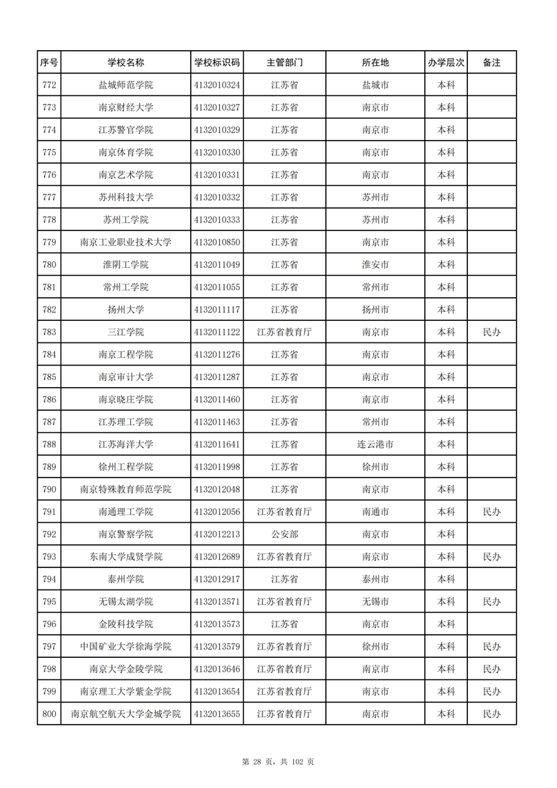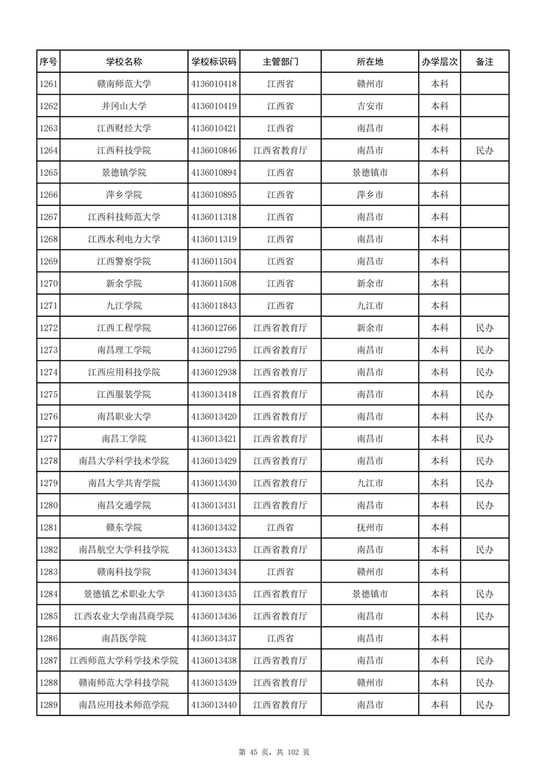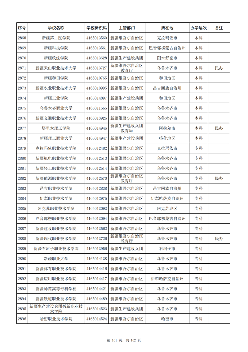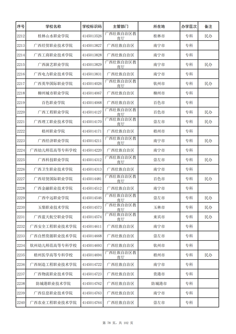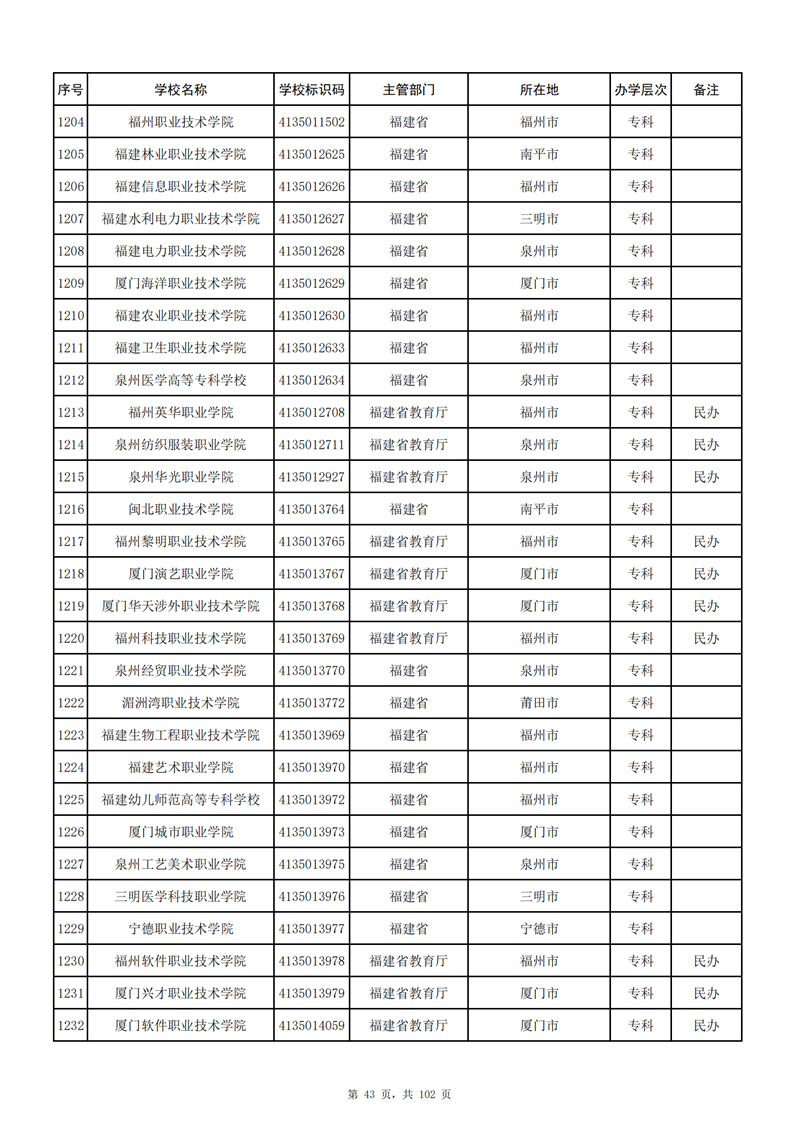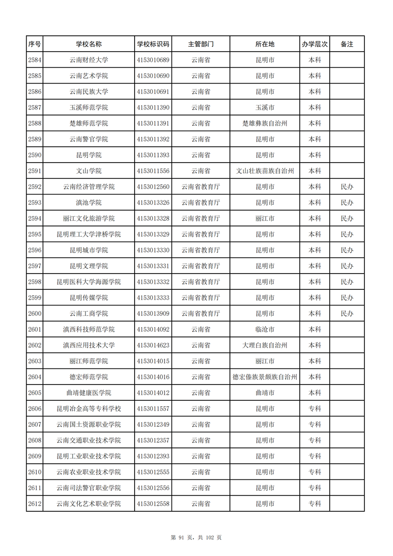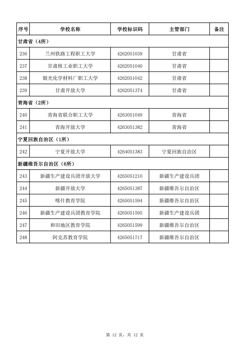 截至2025年6月20日,全國高等學校共計3167所,其中:普通高等學校2919所,含本科學校1365所、高職(專科)學校1554所;成人高等學校248所。本名單未包含港澳臺地區(qū)高等學校。