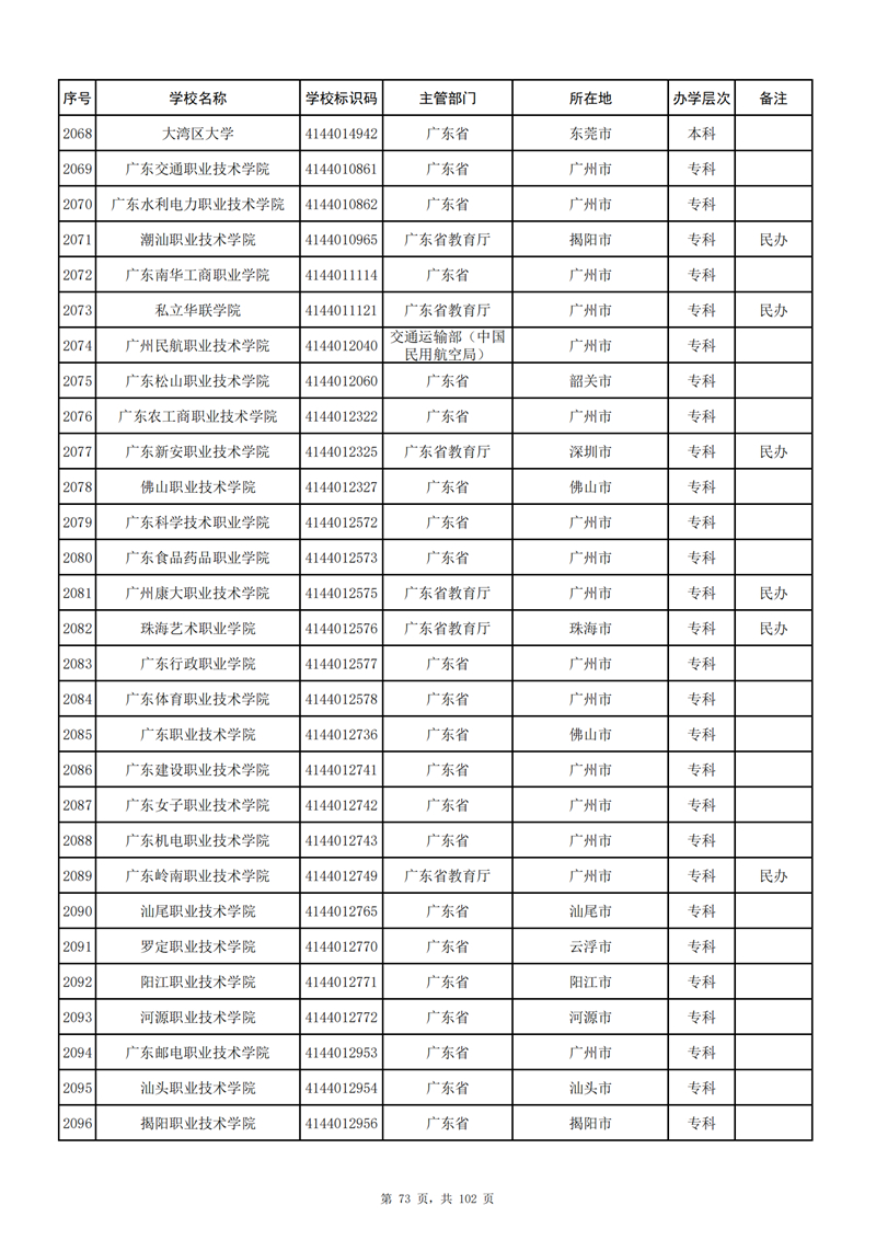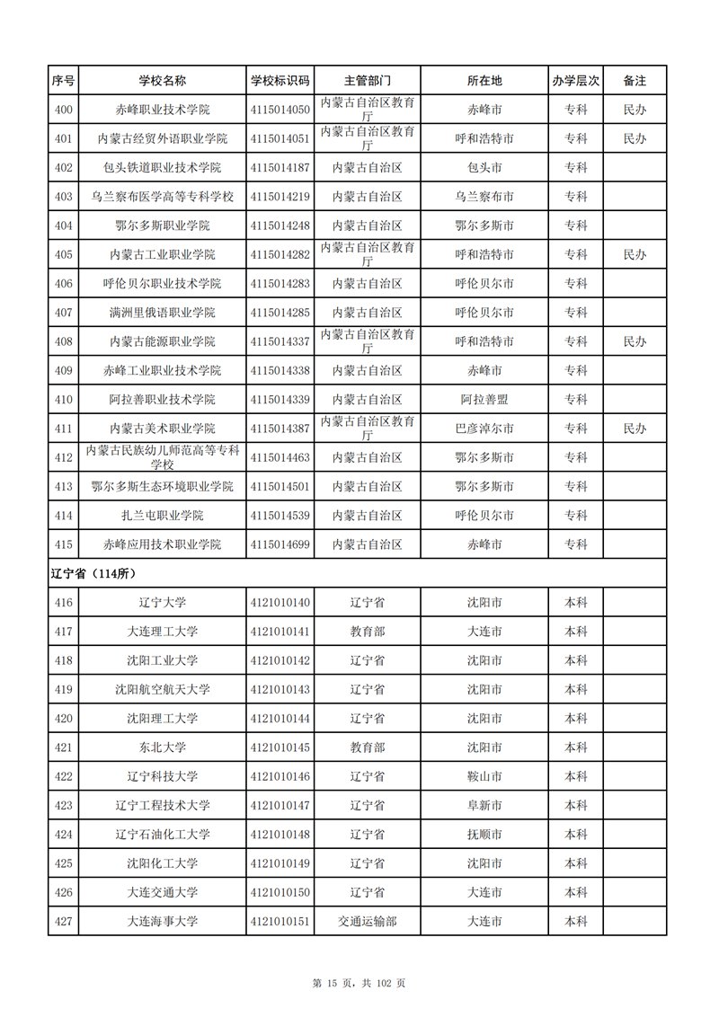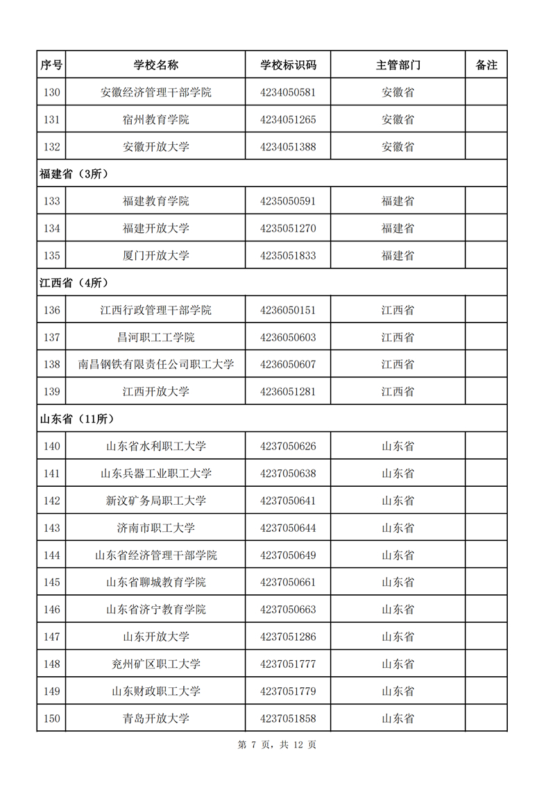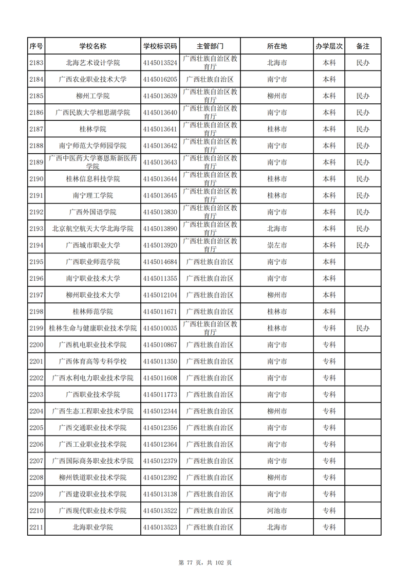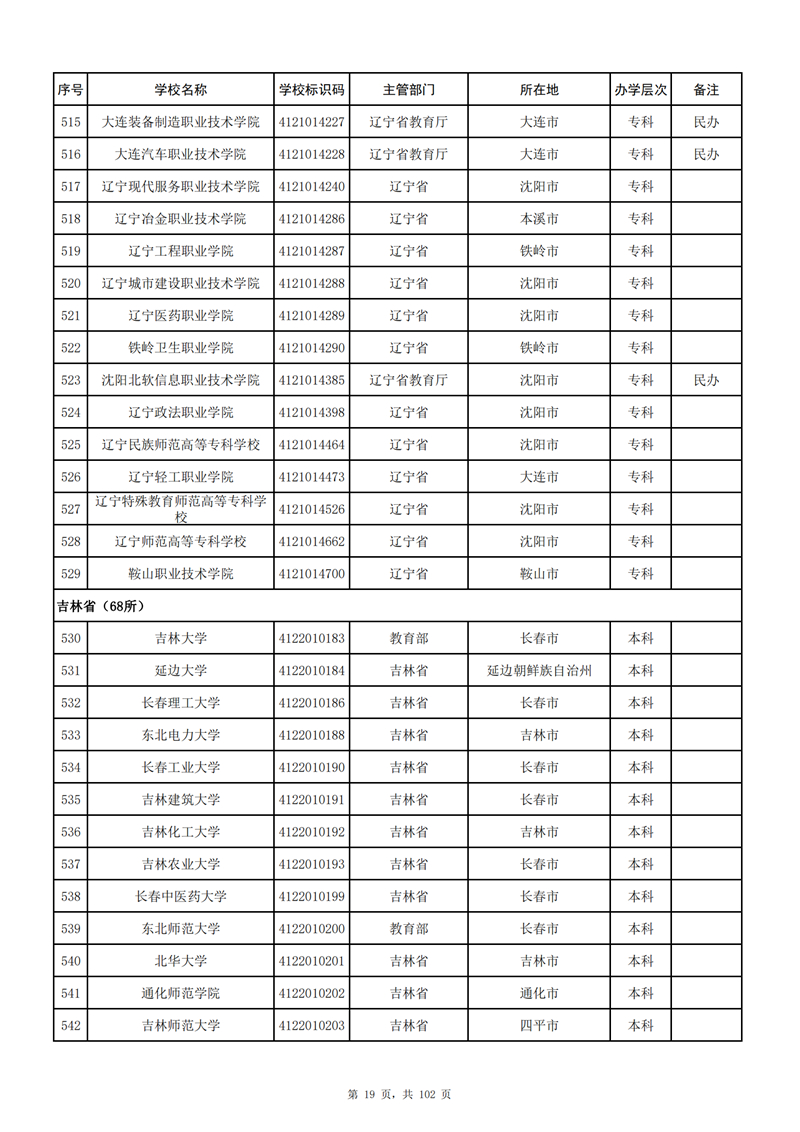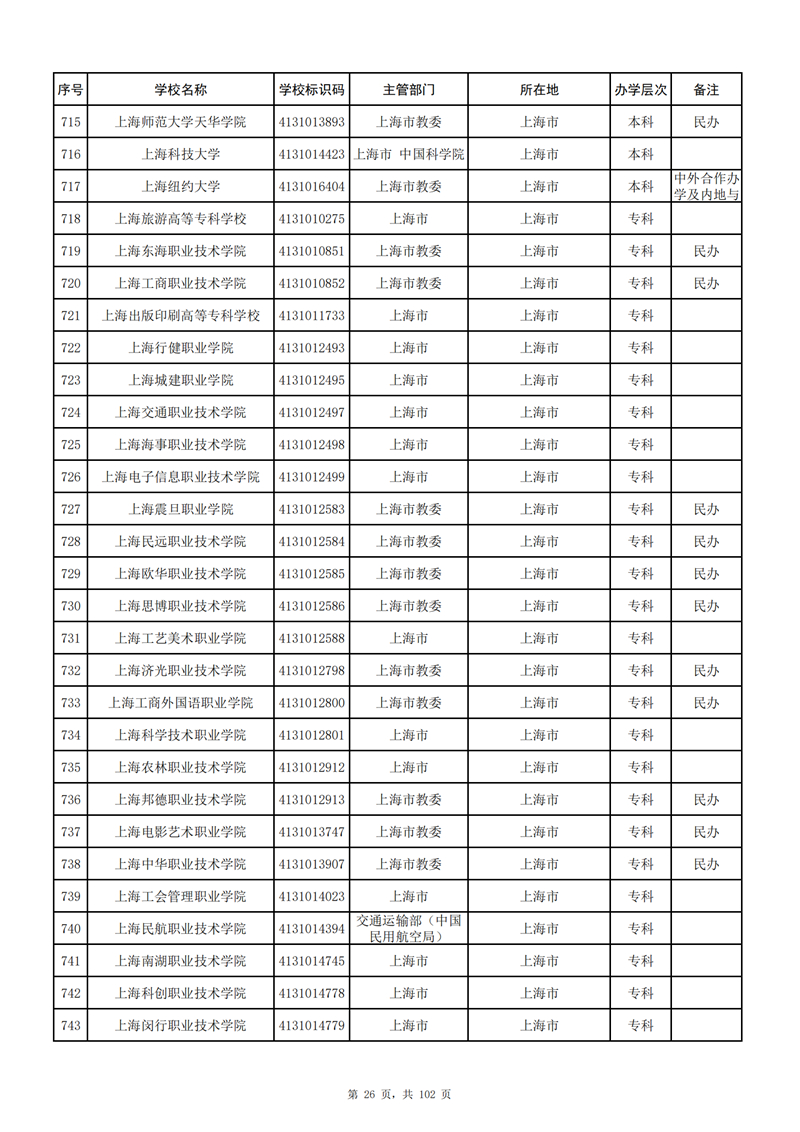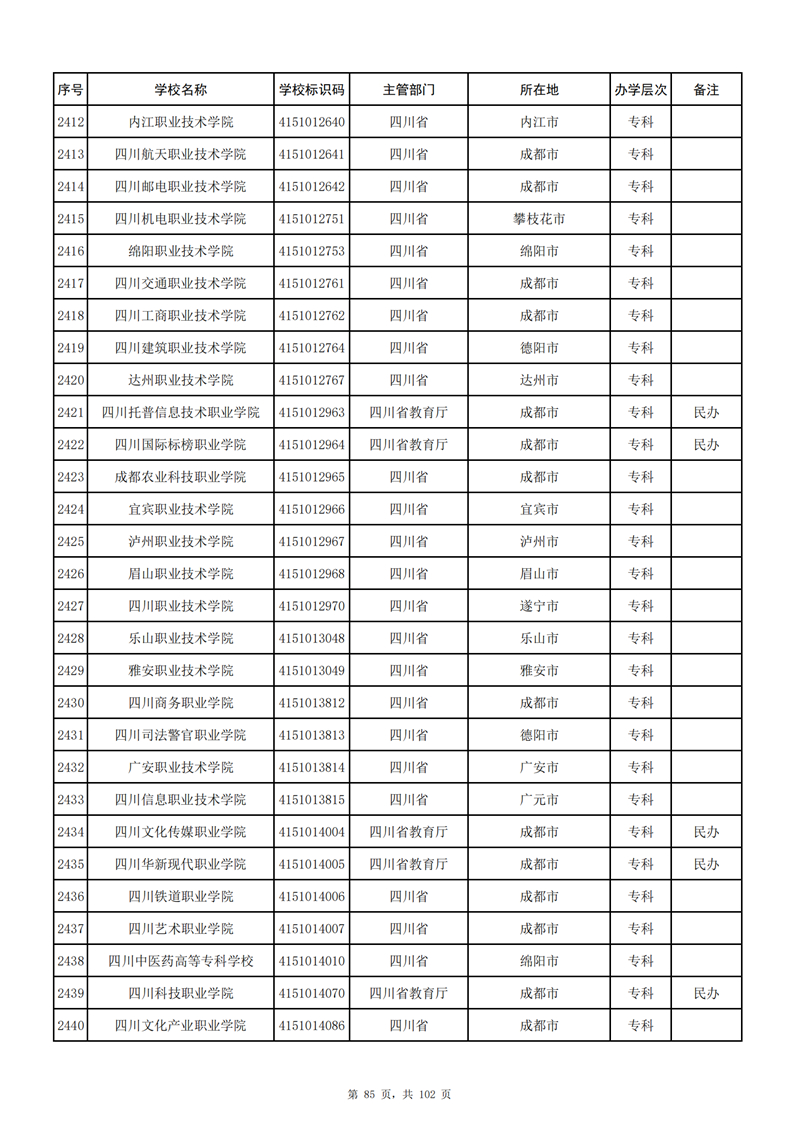 截至2025年6月20日,全國高等學校共計3167所,其中:普通高等學校2919所,含本科學校1365所、高職(專科)學校1554所;成人高等學校248所。本名單未包含港澳臺地區(qū)高等學校。