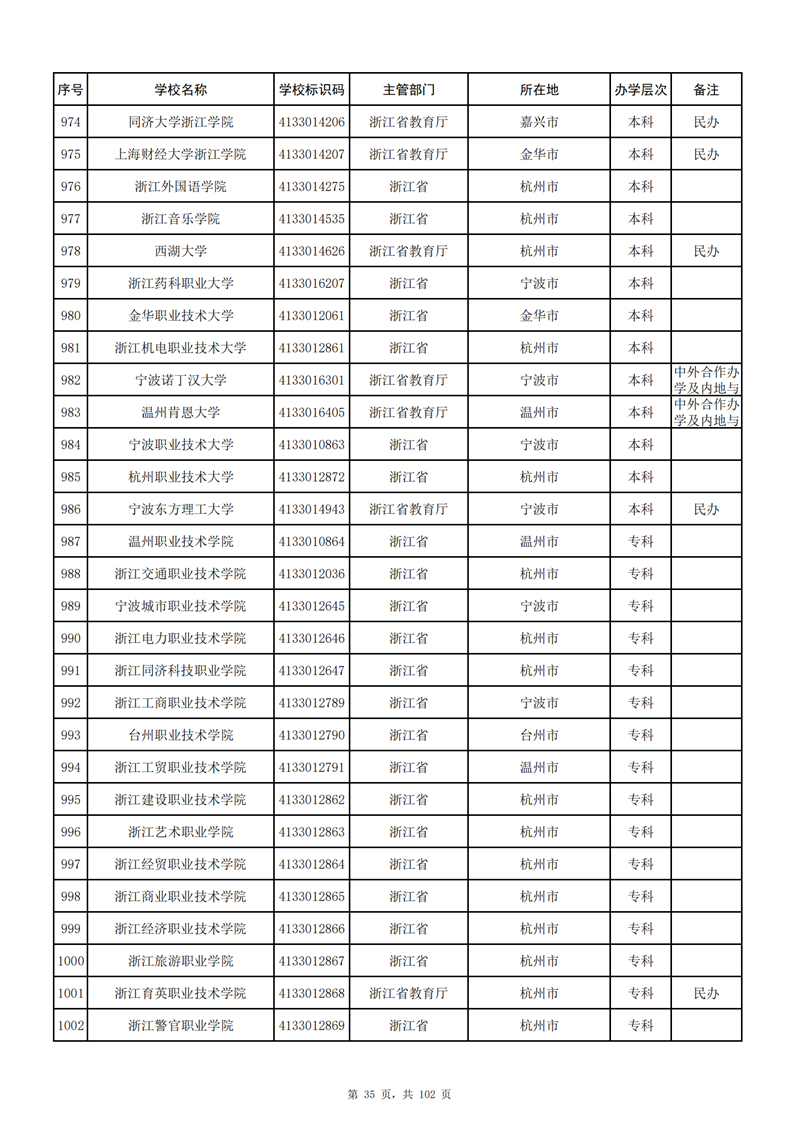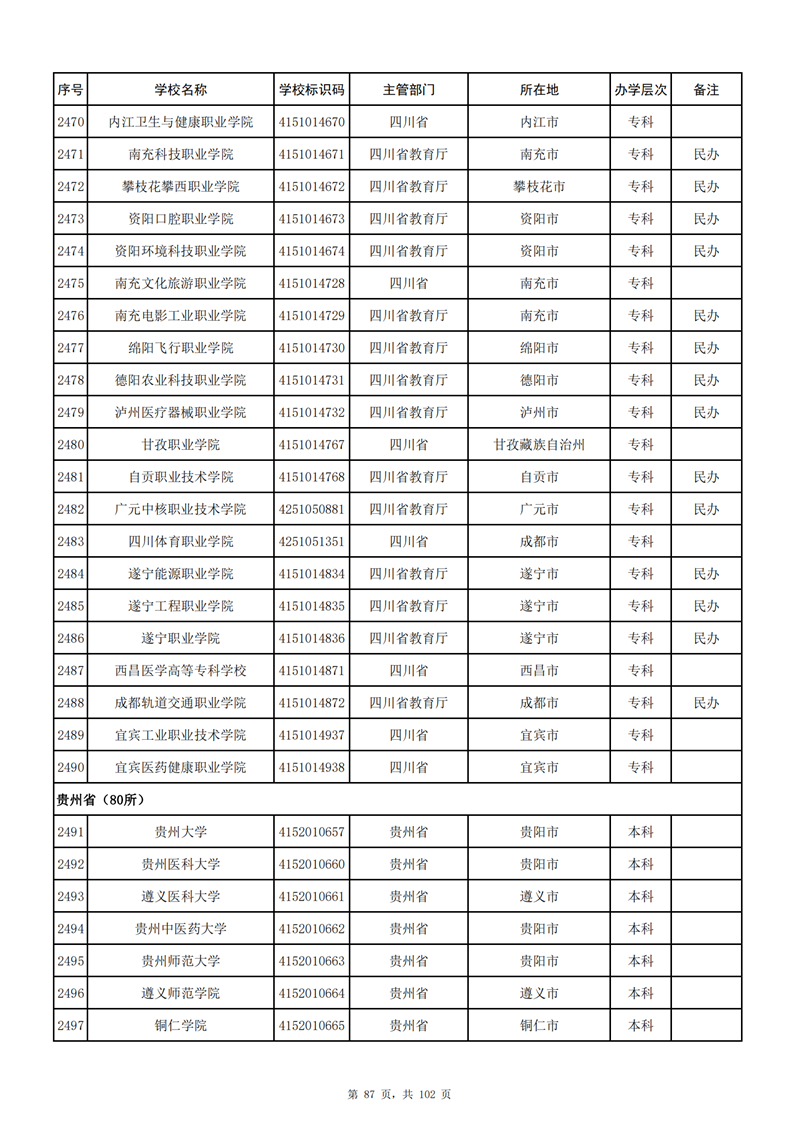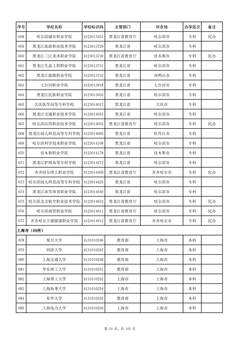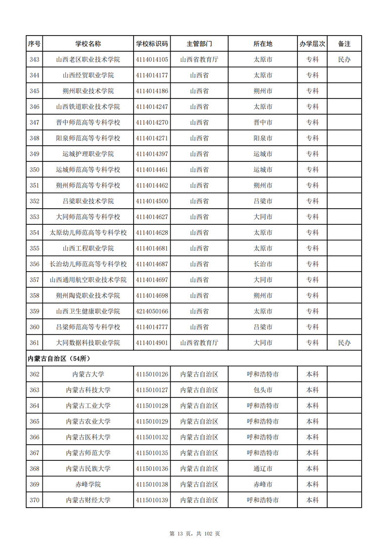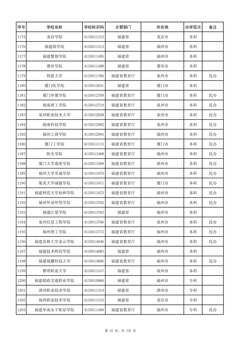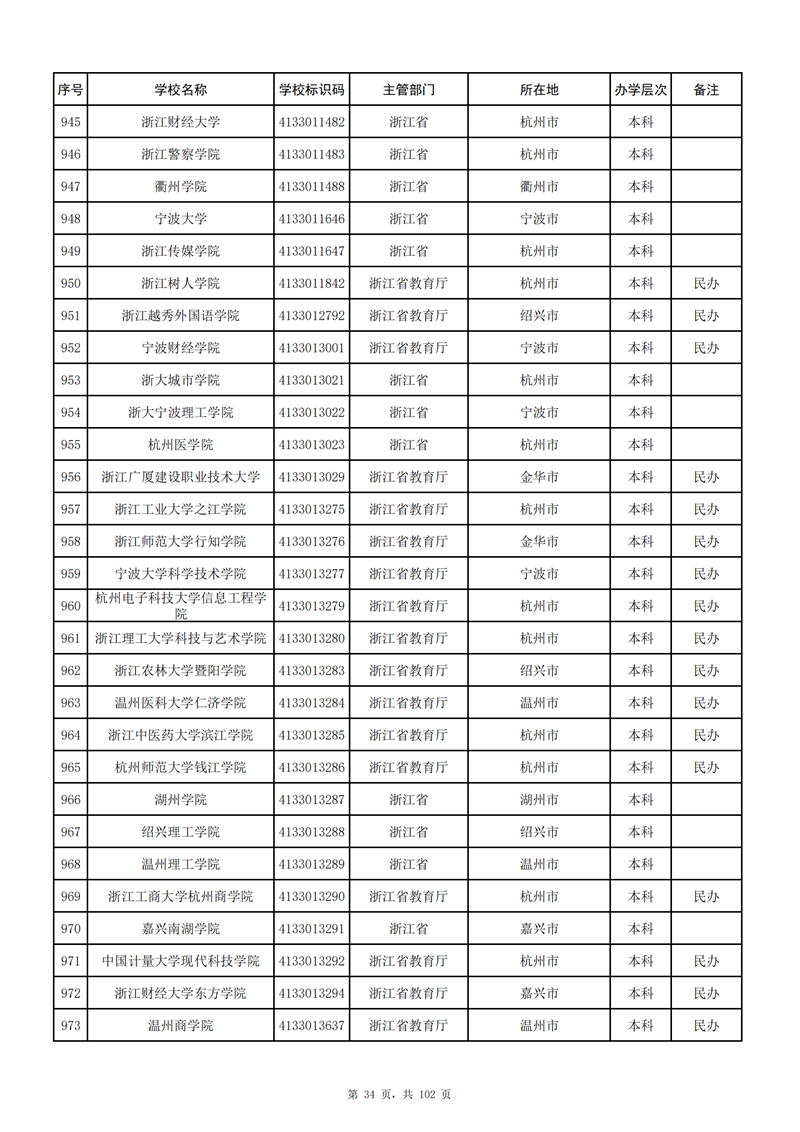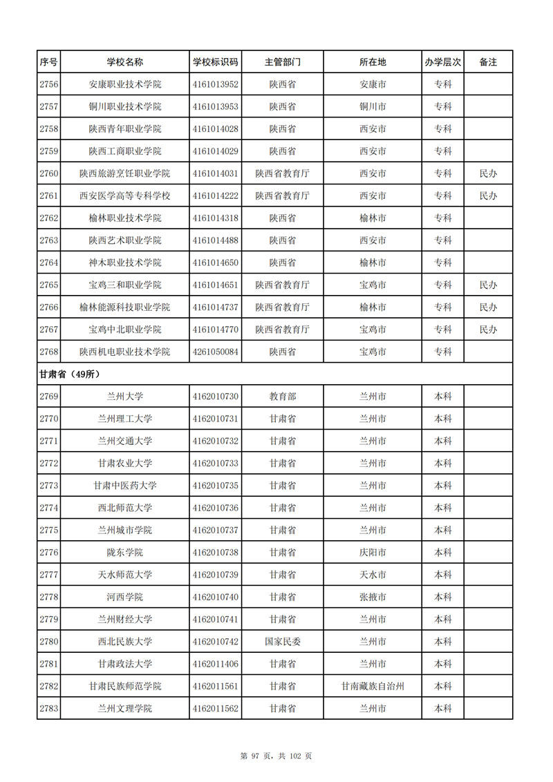 截至2025年6月20日,全國高等學校共計3167所,其中:普通高等學校2919所,含本科學校1365所、高職(專科)學校1554所;成人高等學校248所。本名單未包含港澳臺地區(qū)高等學校。