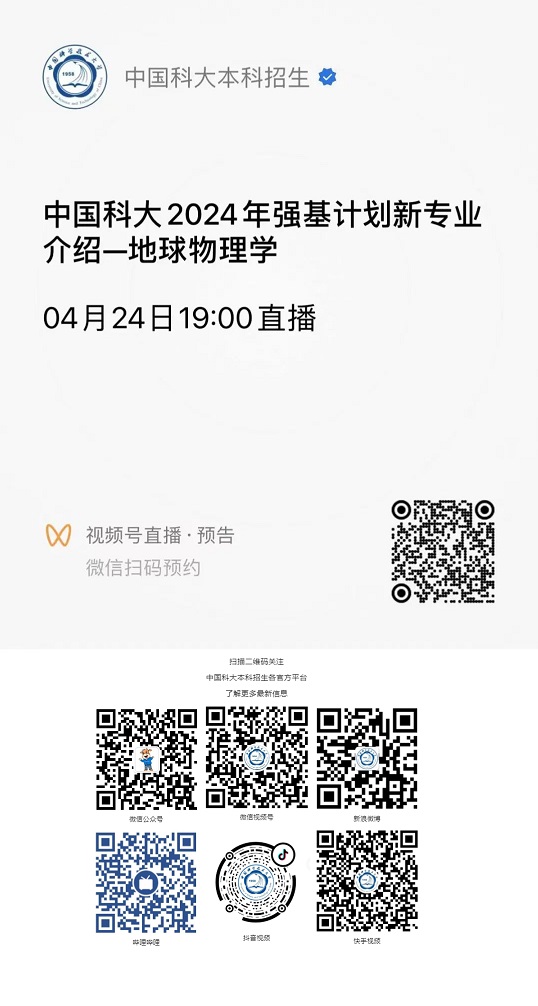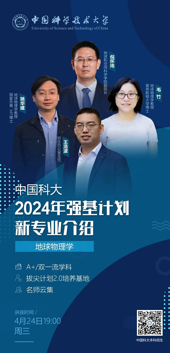 | 直播預(yù)告|中國(guó)科學(xué)技術(shù)大學(xué)2024年強(qiáng)基計(jì)劃新專(zhuān)業(yè)介紹-地球物理學(xué)(4月24日) |