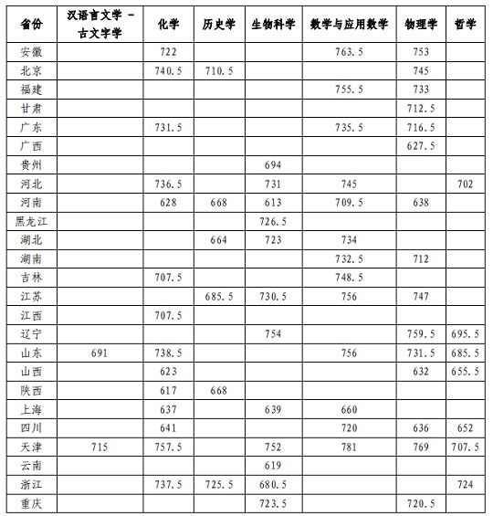 南開大學2024年強基計劃各省各專業(yè)第一類考生入圍標準
