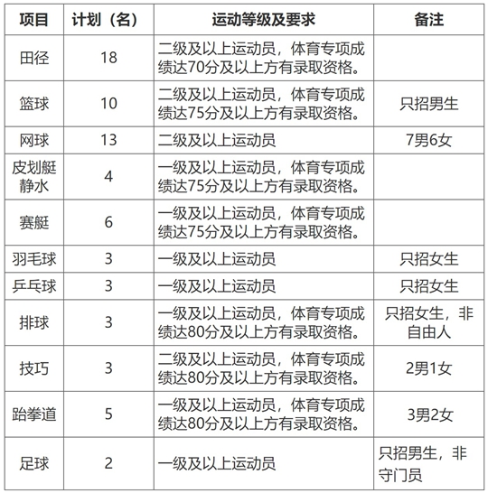 2.具備所列招生項(xiàng)目運(yùn)動(dòng)技術(shù)等級(jí)及要求;