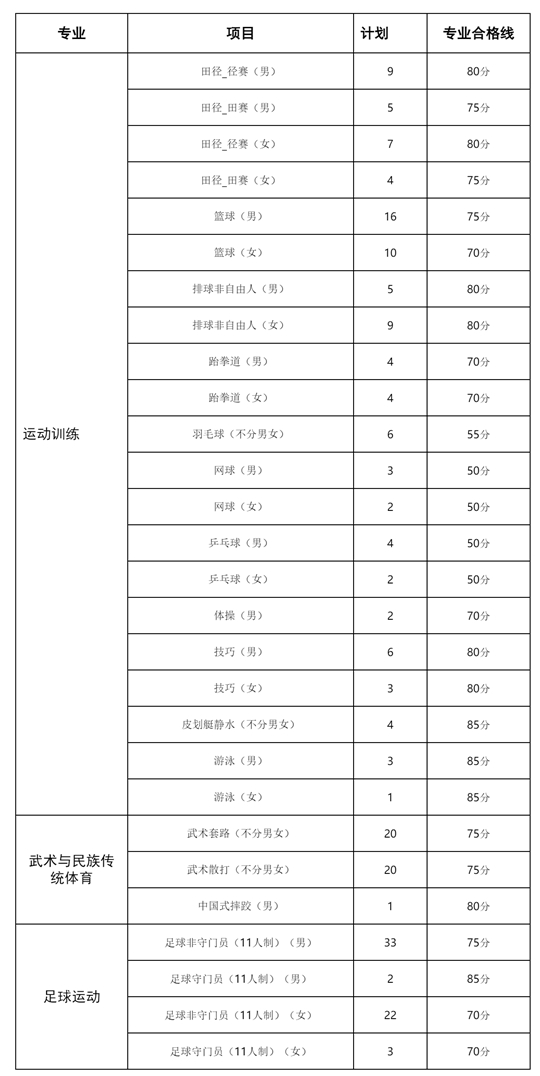 我校足球運動專業(yè)考試招生納入運動訓練專業(yè)考試招生,并按有關工作要求執(zhí)行。