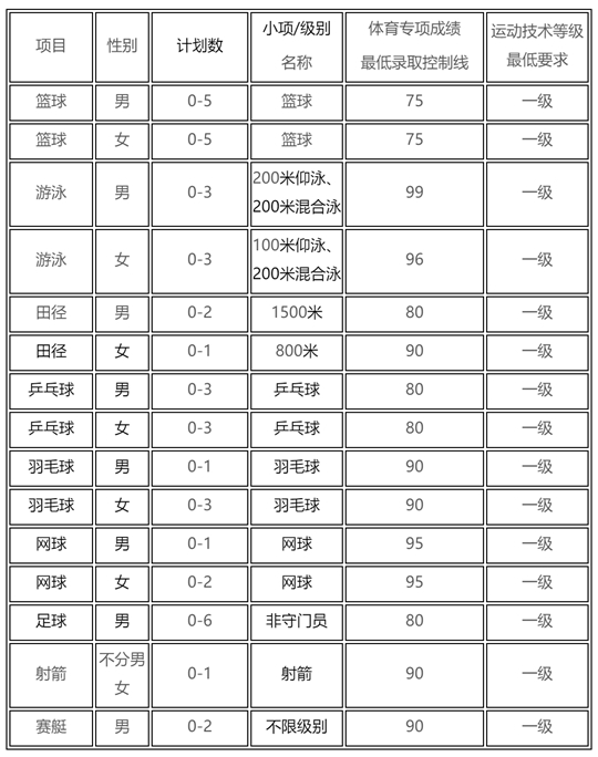 上海交通大學(xué)2025年運動訓(xùn)練專業(yè)招生計劃不超過41人,各項目招生計劃如下: