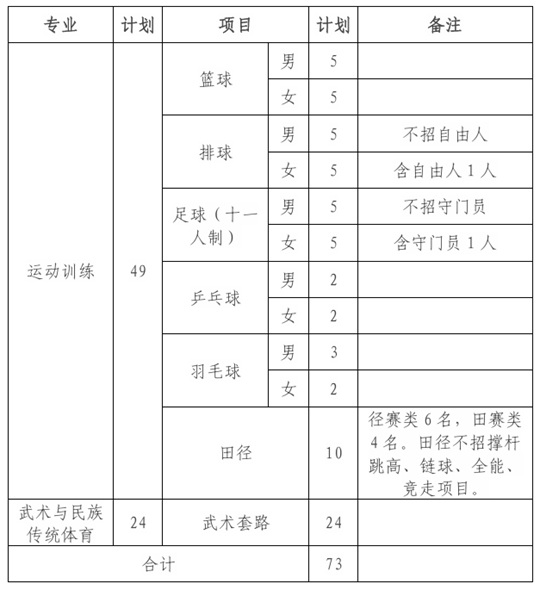 (三)考生如已報名運動訓(xùn)練、武術(shù)與民族傳統(tǒng)體育專業(yè)志愿并被錄取,不得放棄錄取資格,入學(xué)后不得轉(zhuǎn)入其他專業(yè)學(xué)習(xí)。