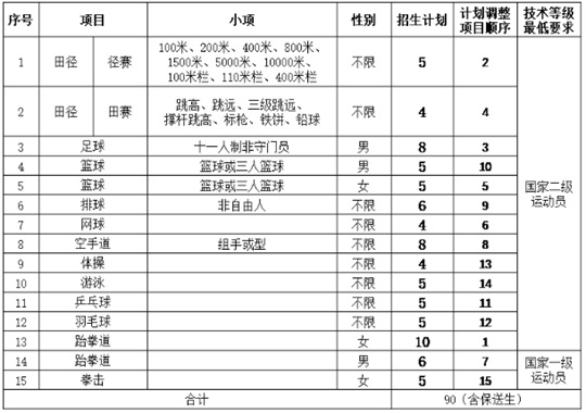 備注:被我校錄取的考生,入校后學習的運動項目需在學校開設的項目中選擇。