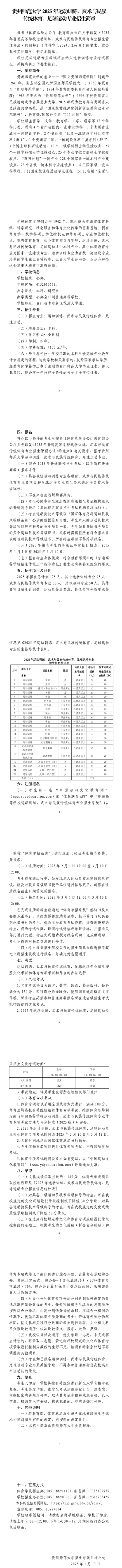 貴州師范大學2025年運動訓練、武術與民族傳統體育、足球運動專業招生簡章
