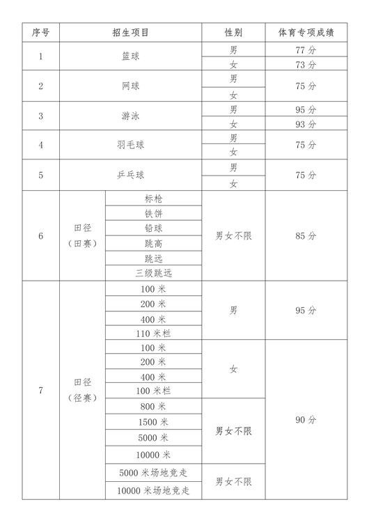 (二)體育專項成績錄取控制線