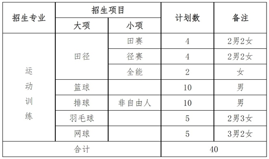1.按照國家體育總局要求,文化成績最低錄取控制線不低于180分;專項成績最低錄取控制線:羽毛球、網球不低于40分,籃球不低于60分,排球不低于60分,田徑不低于60分。
