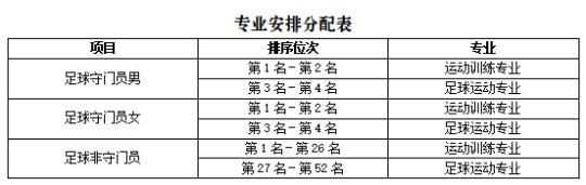 (五)運動訓練專業足球項目和足球運動專業錄取時,按綜合分排序,按照《專業安排分配表》先錄取運動訓練專業足球項目,再錄取足球運動專業。