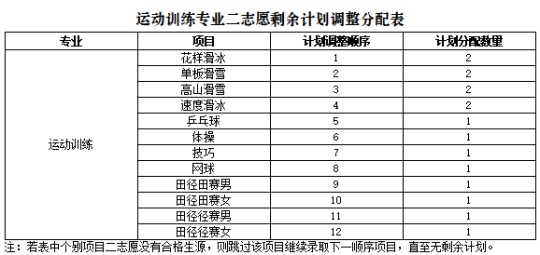 (六)我校依據梯次順序,優先錄取一志愿,未完成招生計劃的項目,再錄取二志愿。二志愿合格生源不足項目的剩余計劃將進行調整,運動訓練專業二志愿剩余計劃按照《運動訓練專業二志愿剩余計劃調整分配表》中計劃調整順序和計劃分配數量錄取二志愿考生;武術與民族傳統體育專業二志愿剩余計劃錄取本專業另一項目二志愿考生;計劃調整后錄取的二志愿考生綜合分必須高于該項目一志愿錄取最低綜合分(一志愿上線考生已被全部錄取的情況除外)。
