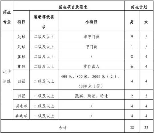 (五)錄取到運動訓練專業的考生入學后不得轉入其他專業學習。