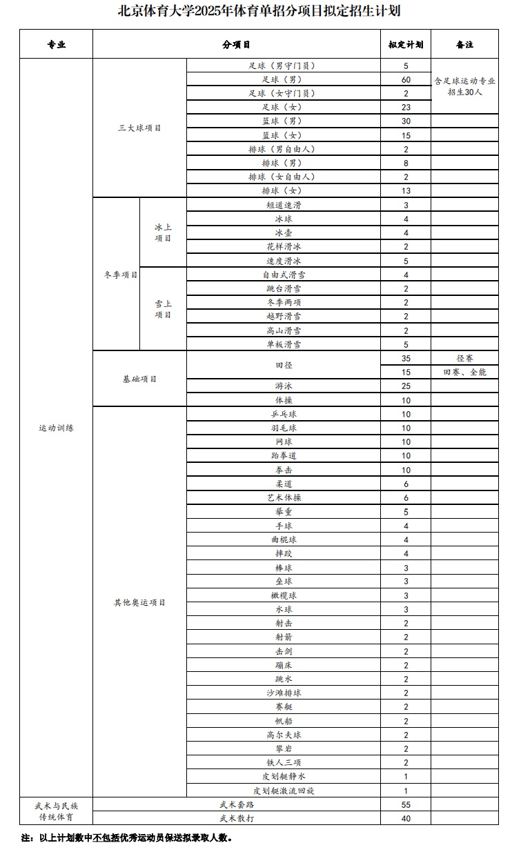 1.北京體育大學(xué)2025年運動訓(xùn)練、武術(shù)與民族傳統(tǒng)體育專業(yè)招生分項目招生計劃(點擊查看)