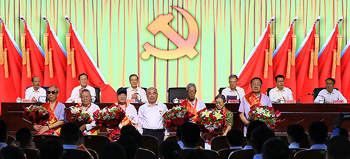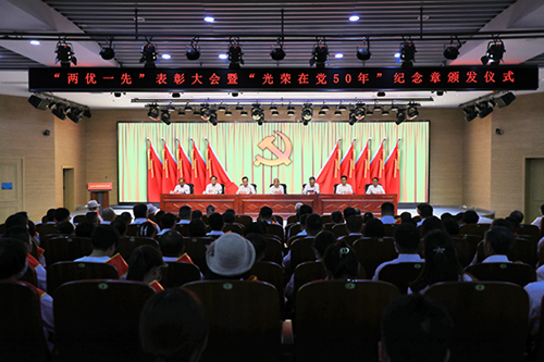 黨委副書記喬忠華宣讀校黨委《關于表彰全校優秀共產黨員、優秀黨務工作者、先進基層黨組織的決定》和“光榮在黨50年”紀念章獲得者名單。100名優秀共產黨員、43名優秀黨務工作者、10個先進基層黨組織受到表彰,47名老黨員榮獲“光榮在黨50年”紀念章。