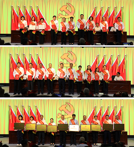 校黨委委員共同為優秀共產黨員代表、優秀黨務工作者代表、先進基層黨組織代表頒獎。