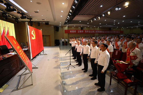 “我志愿加入中國共產黨,擁護黨的綱領,遵守黨的章程……”面向黨旗,張主社帶領新黨員代表入黨宣誓,帶領全體與會黨員重溫入黨誓詞,重溫對黨和人民作出的莊嚴承諾,現場氣氛莊嚴而熱烈。錚錚誓言,鏗鏘恢宏,強烈震撼著在場的每一位黨員,更體現了工科大人對中國共產黨的無限忠誠。