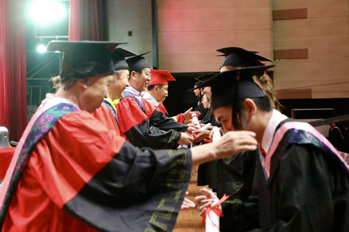 最后,畢業(yè)生代表與校領(lǐng)導(dǎo)、學(xué)位評(píng)定委員會(huì)委員合影留念。