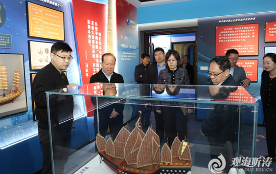 盧光志對(duì)海權(quán)館升級(jí)改造工作給予充分肯定。他指出,海權(quán)館不僅是服務(wù)國(guó)家海洋強(qiáng)國(guó)建設(shè)、提升全民海權(quán)意識(shí)的重要載體,也是深化愛(ài)國(guó)主義教育、國(guó)防教育,推動(dòng)學(xué)校海洋特色“大思政課”體系建設(shè)的重要平臺(tái)。他強(qiáng)調(diào),海權(quán)館要持續(xù)優(yōu)化展陳內(nèi)容、提升講解服務(wù)質(zhì)量、強(qiáng)化場(chǎng)館運(yùn)營(yíng)管理、拓展館際交流合作,為學(xué)校踐行海洋人才培養(yǎng)與海洋權(quán)益教育使命提供堅(jiān)實(shí)支撐。
