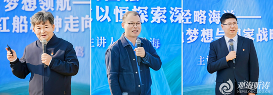 黨課以“啟航—深藍(lán)—礪劍—融匯—揚(yáng)帆”為清晰主線,層層遞進(jìn)傳遞精神力量。黨委常委、統(tǒng)戰(zhàn)部部長(zhǎng)陳鷟圍繞“紅船精神與藍(lán)色夢(mèng)想”授課,從開(kāi)天辟地的首創(chuàng)精神切入,闡釋“紅船精神”作為海洋強(qiáng)國(guó)建設(shè)的精神航標(biāo),解讀其與海大人“浩海求索”傳統(tǒng)的內(nèi)在契合;化學(xué)化工學(xué)院教授張洪海以西北太平洋觀測(cè)體系構(gòu)建為線索,講述科研人員接續(xù)奮斗、深耕遠(yuǎn)海觀測(cè)的艱辛歷程,詮釋“持之以恒、久久為功”的科學(xué)家精神;文科處處長(zhǎng)董躍聚焦海洋強(qiáng)國(guó)建設(shè),解析國(guó)家經(jīng)略海洋部署與學(xué)校使命,引導(dǎo)師生將個(gè)人追求融入國(guó)家海洋事業(yè)。