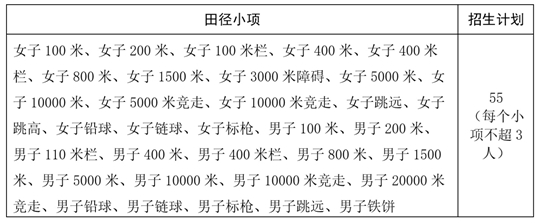 (三)女子10000米競走、男子20000米競走招生小項與考試小項對應關系如下表,其余報考小項與體育專項考試小項一致。