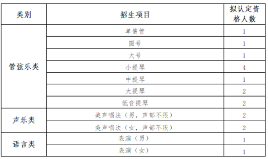 我校2022年高水平藝術團招生計劃為9人,擬認定資格考生不超過18人,各招生項目及擬認定資格人數如下:
