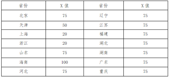 (2)對于北京、天津、上海、浙江、山東、海南、河北、遼寧、江蘇、福建、湖北、湖南、廣東、重慶等十四個高考綜合改革省份的考生,高考投檔成績須達到生源地省份確定的高水平藝術團相關最低錄取控制參考分數線上X分及以上(各省份X值詳見下表),經生源地省份省級招生考試機構審批同意,我校予以錄取,并滿足考生填報的前三個專業志愿之一(考生不得重復填報同一專業)。