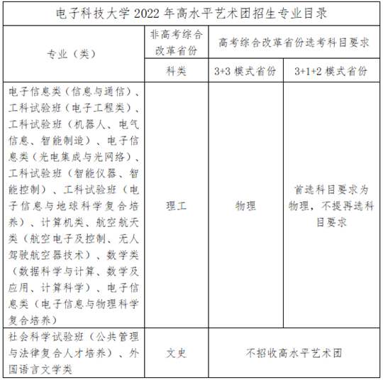 | 電子科技大學2022年高水平藝術團招生簡章 |
