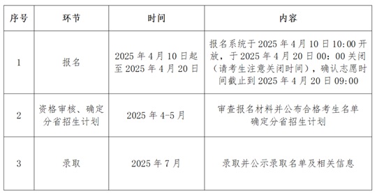 2025年高校專項(xiàng)計(jì)劃招生工作程序見下表: