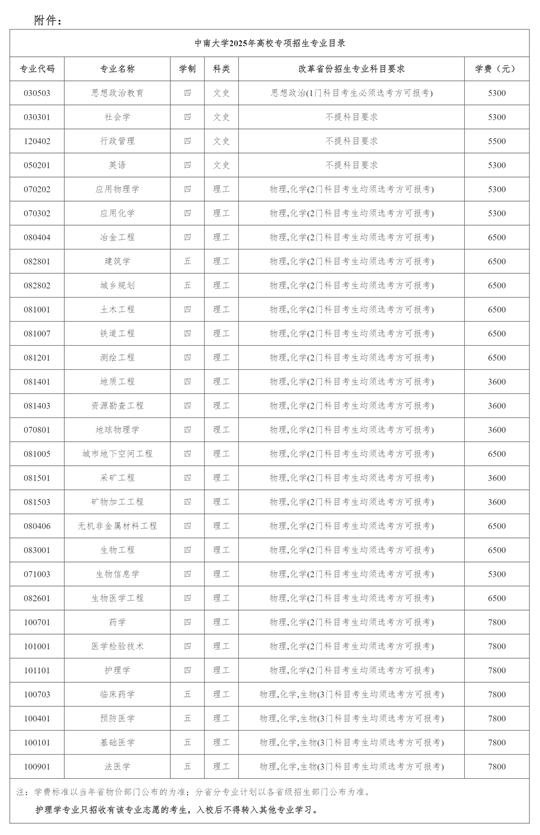 按照教育部《關于做好2025年重點高校招生專項計劃工作的通知》(教學司〔2025〕6號)規定和要求,中南大學2025年繼續實施高校招生專項計劃,具體辦法如下: