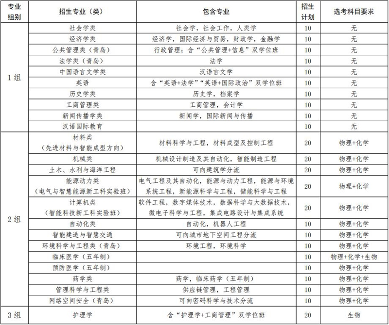 注1:考生只能報考其中一個組別的專業,最多可報6個專業志愿,并可選擇是否服從專業調劑(同組內調劑);根據生源情況,各專業招生計劃可適當調整;最終招生專業及計劃以山東省教育招生考試院公布為準。