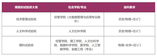 (一)經濟管理試驗班:首選科目為歷史或物理,再選科目不限。大一結束時學生可在經管學院的所有專業內(大數據管理與應用專業除外)選定主修專業;