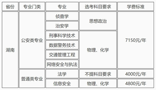 公安類專業:報考公安類專業的考生須參加并通過政治考察、面試、體能測評及體檢。學校根據湖南省招生主管部門提供的考生投檔成績和專業志愿分科類(專業組)按照“分數優先,遵循志愿”的原則開展錄取工作,對于分數低、填報專業已錄滿,且不服從調劑的考生予以退檔。