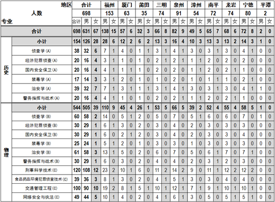(2)報(bào)考司法警察類專業(yè)考生必須在福建報(bào)名并參加高考,戶籍不限,為高級(jí)中等教育學(xué)校畢業(yè)。