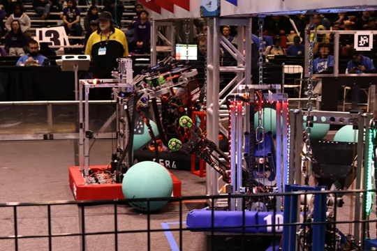 然而,海外征途并非一帆風順。曾雨淇團隊首先遭遇了設備電壓差異的挑戰——從國內帶去的焊臺無法適應美國120V電壓,導致維修工具失效。緊急時刻,在3925隊的慷慨幫助下,他們借助對方的場地和設備完成關鍵零件的切割和調試,化解了危機。此外,比賽場地的光線條件與訓練環境有所不同,對機器人的視覺識別系統提出考驗。團隊迅速調整攝像頭參數與曝光補償,確保了機器人可以通過AprilTag這一視覺基準系統進行全場定位。