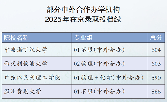 在中外合作辦學機構中,西交利物浦大學、寧波諾丁漢大學、溫州肯恩大學、香港城市大學(東莞)等大部分院校在本科普通批次進行錄取。