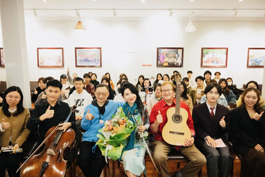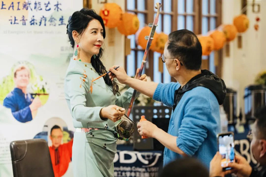 3月14日下午,上海理工大學中英國際學院迎來了一場藝術與科技交融的視聽盛宴,此次講座邀請到了中英國際學院榮譽教授、海派民樂跨界藝術領軍者、國家一級演員、二胡藝術家馬曉輝教授攜手她的嘉賓朋友們,以《讓AI賦能藝術,讓音樂療愈生命》為主題,帶領師生探索藝術與人工智能的跨界可能,正式啟動了2025年上海宋慶齡基金會馬曉輝文化藝術專項基金“校園公益行”活動。馬曉輝教授以多重身份深刻詮釋了藝術創新的豐富內涵,同時成為“藝術校園、文化校園、智慧校園”的典范,向世界生動講述中國故事,成為一張閃耀的文化名片。中英國際學院黨委副書記、副院長蔡卉,以及師生代表們共同參加本次活動,全場座無虛席。