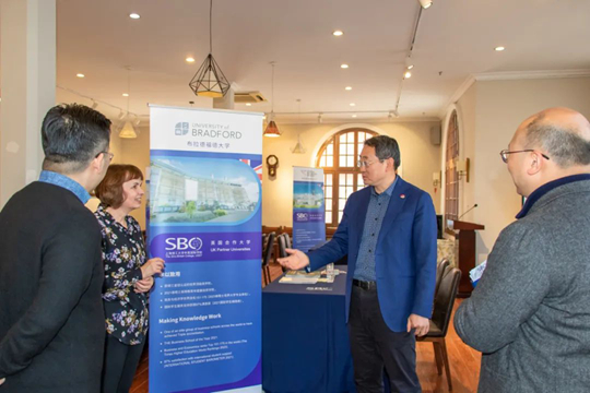 中英國際學院黨委副書記、副院長(主持行政工作)張崢與英國合作大學代表進行互動交流