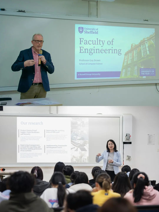 謝菲爾德大學中國區域經理安妮塔·桑德漢姆(Anita K Sandham)表示,謝菲爾德大學是中英國際學院的合作大學之一,近期為同學們開展了升學系列活動,包含工科升學講座、商科升學講座、合作大學咨詢會以及中國學生見面會,邀請來自不同學院的教授、各行各業的校友、知名企業代表等嘉賓分享前沿資訊和心得體會。歡迎中英的同學們選擇在謝菲爾德大學升學深造。學院海外服務部顧瑩老師表示,學院充分發揮合作大學的機會與資源,為學院學生的學業情況和職業發展提供切實有效的個性化指導。希望同學們在學院的支持下成功升入心儀的英方院校,繼續追求學術理想。
